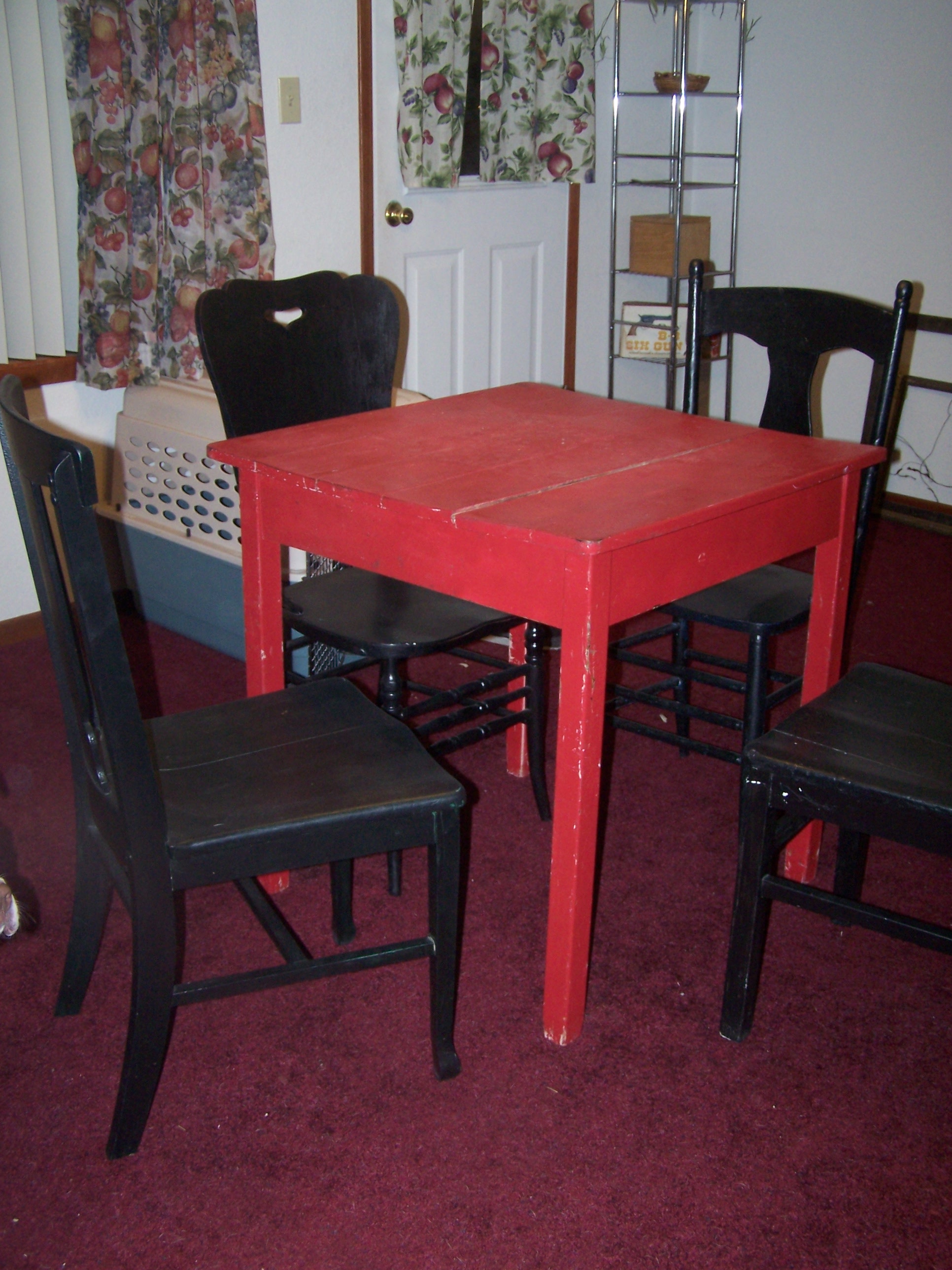 This is our little dining table. It is very old and imperfect, but, it has so much character and personality. Even the chairs are worn-in, and mismatched!