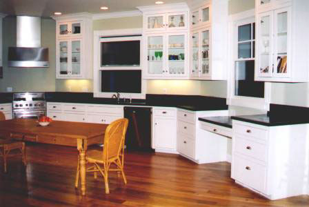 I have also been reading that it is possible to safely paint laminate countertops. Since paint is a much cheaper alternative to replacing the countertops at this point I would like to paint these black. Here is inspiration for a black and white kitchen with warm hardwood floors: