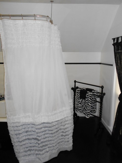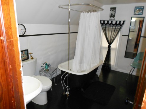 I decided to refinish a clawfoot tub and move it away from the wall a couple of feet in order to add a diverter faucet where the ceiling was high enough to stand to shower. The rest fell into place after that. All was done for under $1000. Check it out: