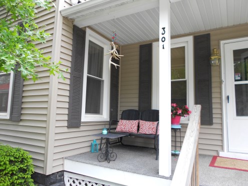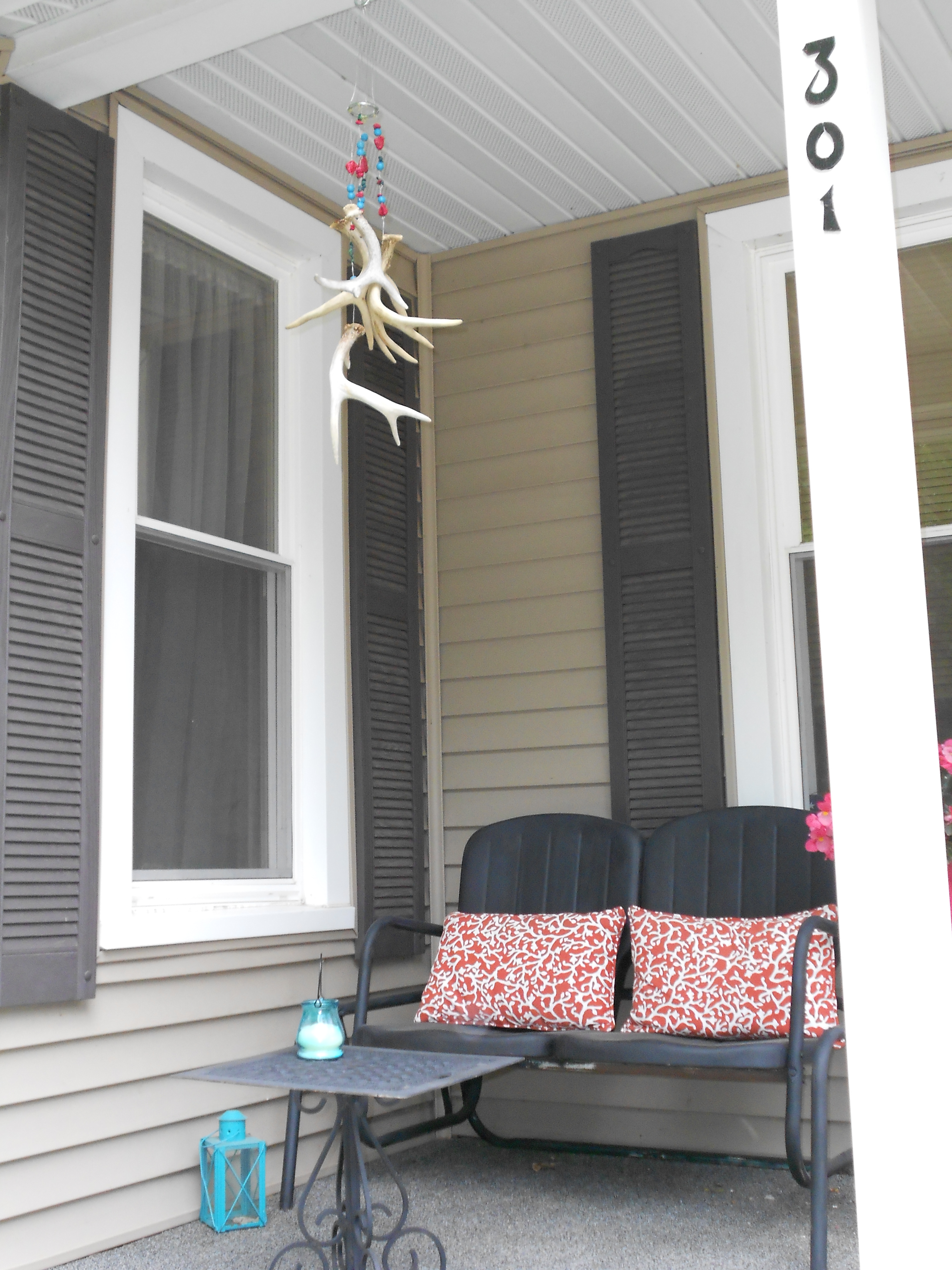 The porch on the new house needed something. I couldn’t decide what. I wanted something unique and fun, but not noisy like metal chimes. Thanks to my boyfriend I think I now have the most unique idea out there. He suggested deer antlers. He had plenty of them, so we set to work.