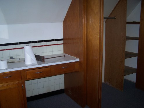 On this wall will eventually be a buffet I am refinishing. Stay tuned for that project soon.