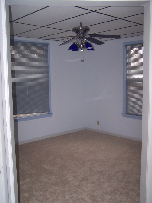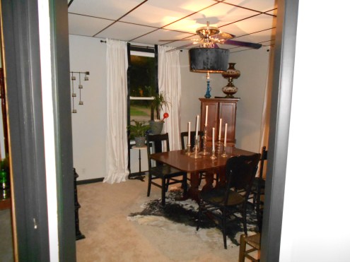 I think I will give you a little before and after tour of each room as I update them in the new house. Besides the bathroom, the dining room was one of the first rooms I refinished. I decided not to mess with the beaded board walls or drop ceiling at this time, and the carpet may someday come out to reveal the… hardwood floors! But for now… the before: