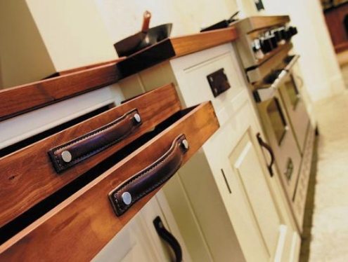 See the post here: http://www.apartmenttherapy.com/ny/kitchen/diy-inspiration-leather-kitchen-cabinet-pulls-147756
