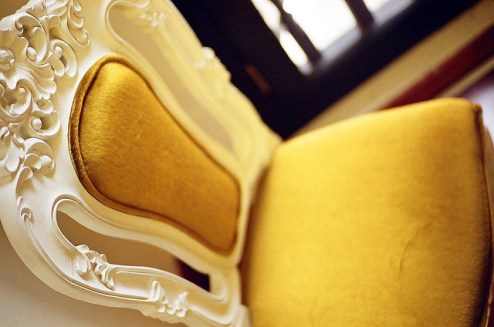I love the bright yellow of this chair. I also love the wood details, the white trim, the vintage style…