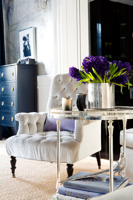 I stumbled upon a bunch of lovely chairs at Desire to Inspire (Kim also has a love of chairs), and this shiny, glamorous one stood out to me. I think I could get a bit of this style to work with some of the other rooms I have posted lately.