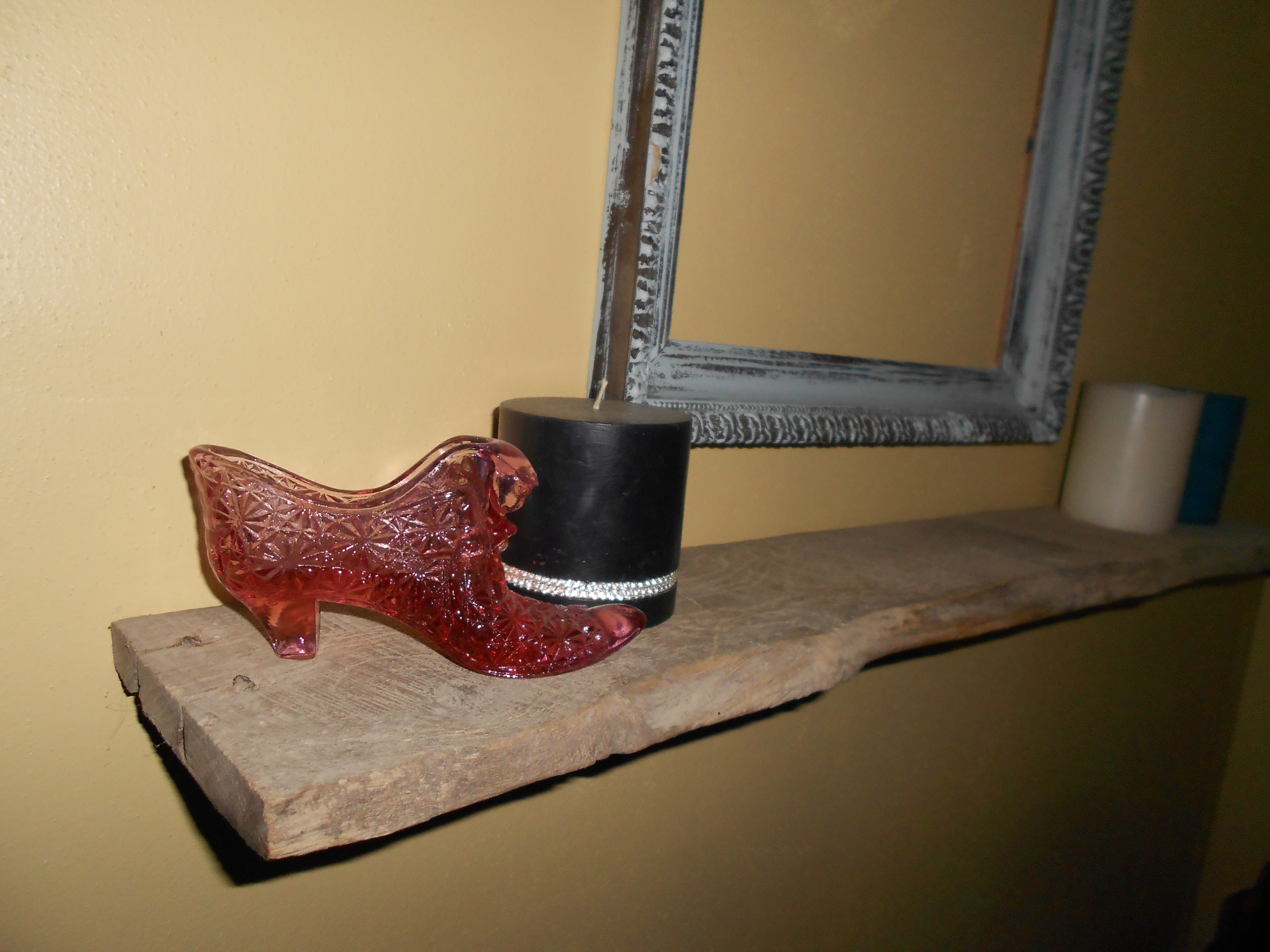 This little shelf is in our bedroom. We made it ourselves (whereas the other elements were added or refurbished by previous owners) and it was made out of a board we found in the barn. The curves in the front of the board were carved out by cows rubbing on it. Oh, and don’t worry, the mustard color will soon go.