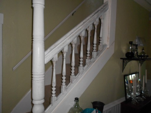 This is a shot of the banister that has been antiqued. This is right off the dining room and basically the view you get as you walk in our main door.