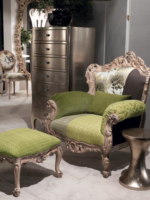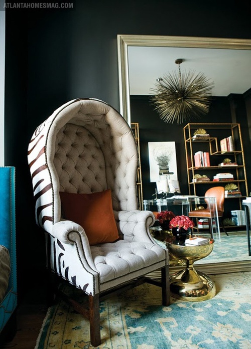 This room is a little too silver and modern for me normally, but this curvy chair done in a patchwork of prints is just awesome!