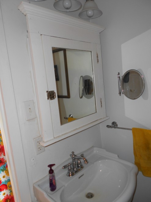 Remember the little downstairs bathroom with the cute antique cupboard… (tiny room = bad photos, sorry!)