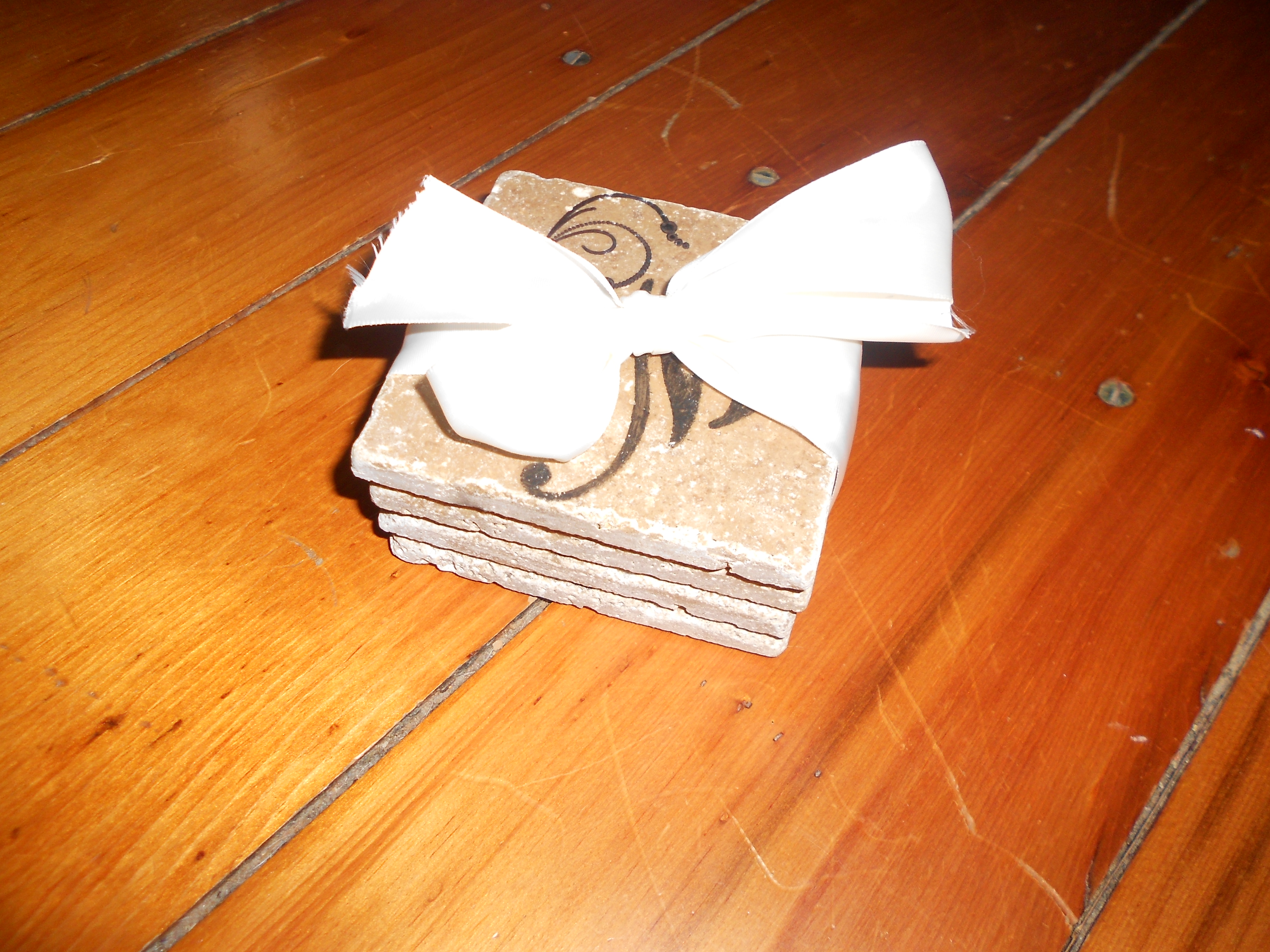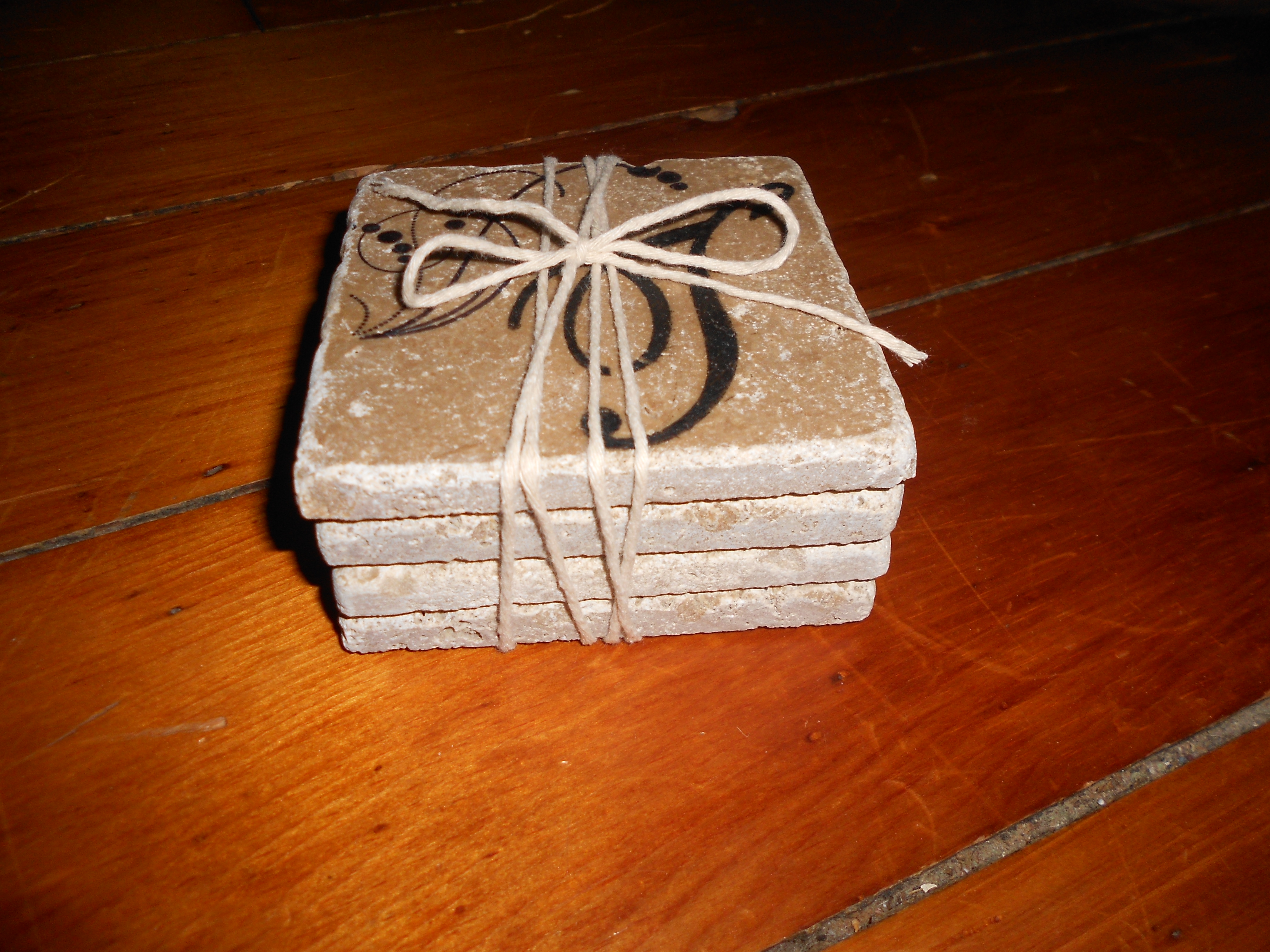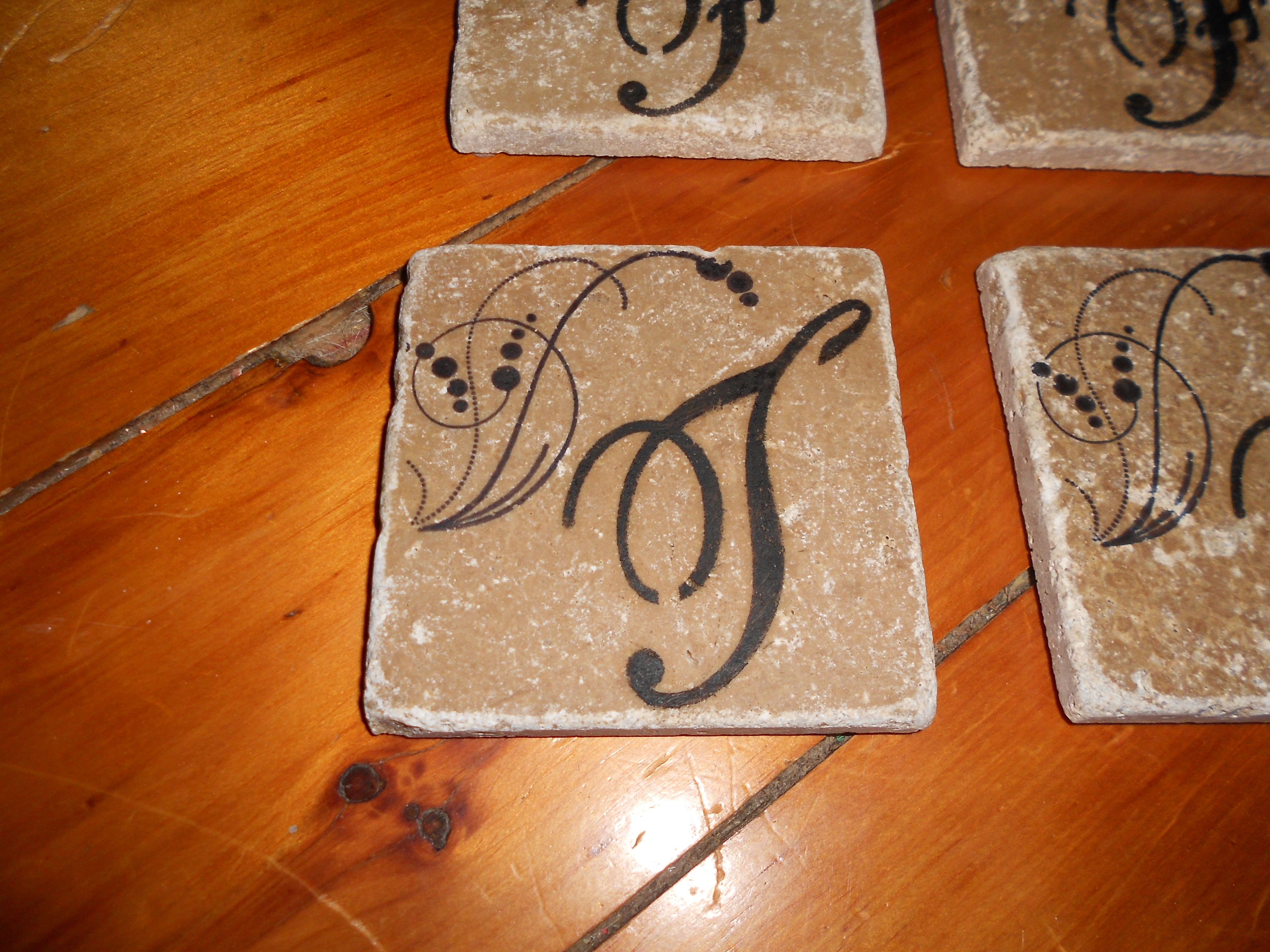 Hi there! I wanted to do a quick post to show you what we made for our family members for Christmas (and an upcoming wedding!). I started with a few simple stone tiles from Menard’s. I used a flat round brush, a stencil, and some solid paint pots. I dabbed the paint on over the stencil without wiping. I then added some clear coat and some felt pads to the bottom corners. Now…we have personalized coasters! I know I have seen this done before, but I had to share because they turned out so sweet and simple. And, they didn’t break the bank!