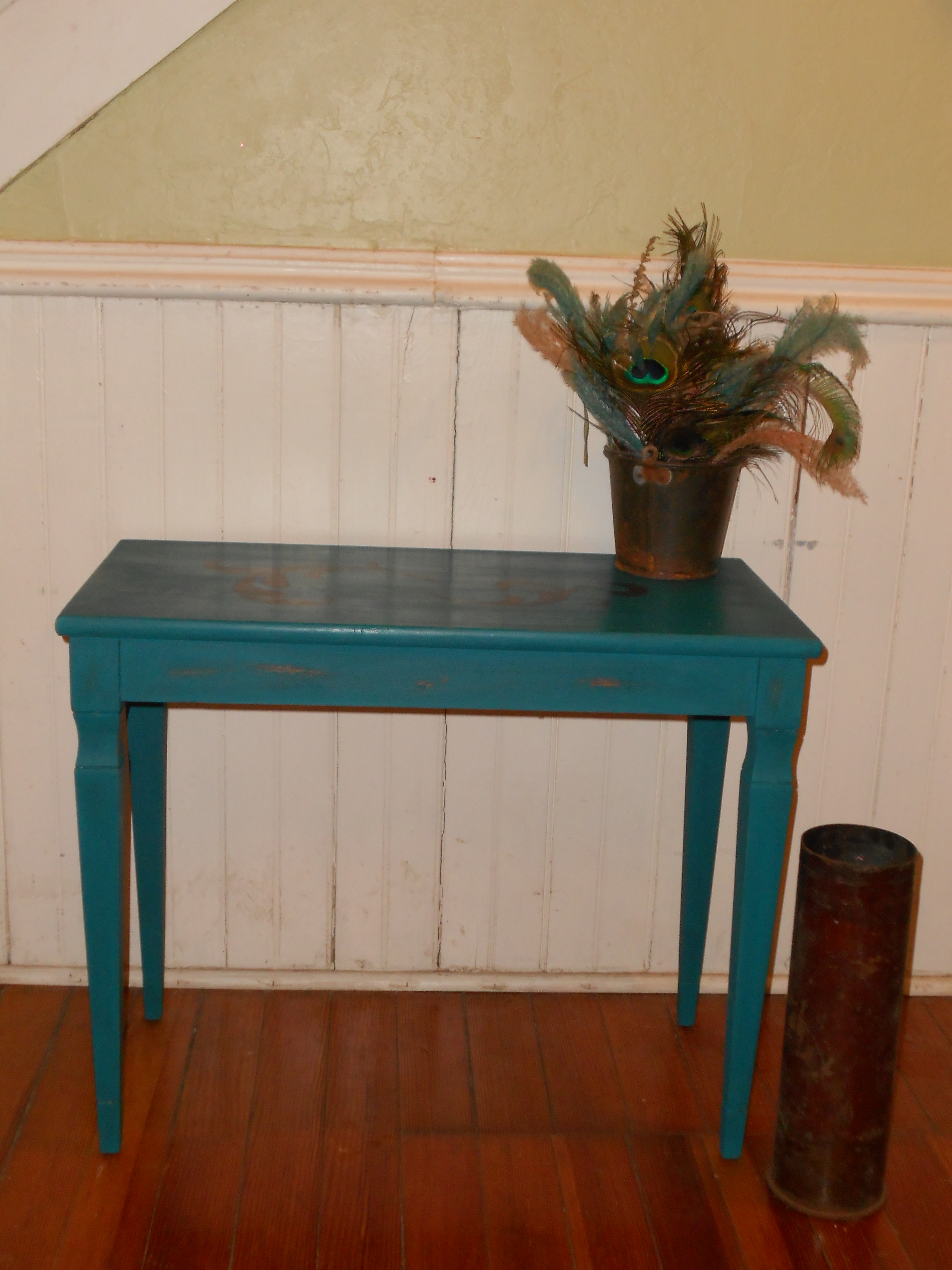 I found this old piano bench, beat up and sad, left behind in the basement of the rental property we own.