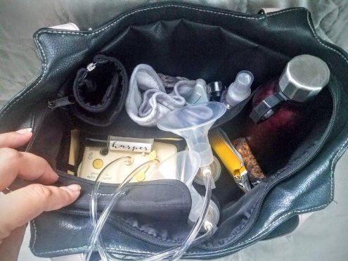 I also carry a notebook. This is not a necessity, but so handy. Your phone would also work. I jot notes while I’m tied down to the pump, and I also note how much I pump so that I can see progress and try to figure out what affects my supply.