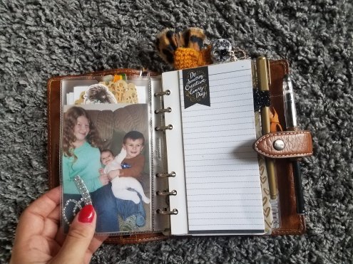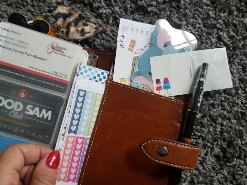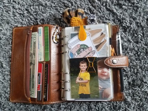 Here is a glimpse inside my planner, where I house most of the “wallet” portion, money, cards, and a few photos.
