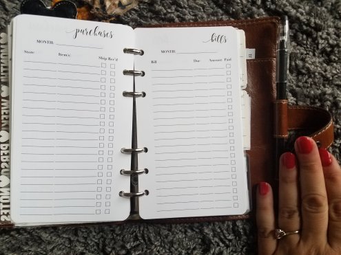 Then I have a Purchases insert. Online shopping can get confusing sometimes, so I track what I’ve got coming here.