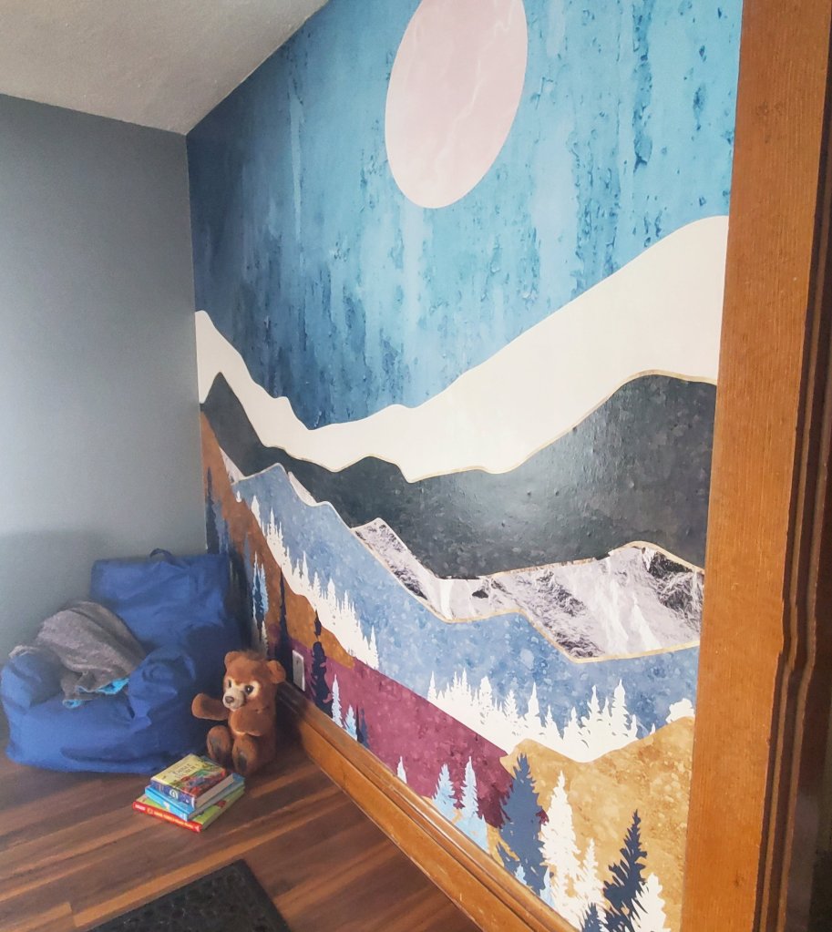 We added a wall mural from PhotoWall! What better way to keep it fun for play and interesting but adult for guests?!