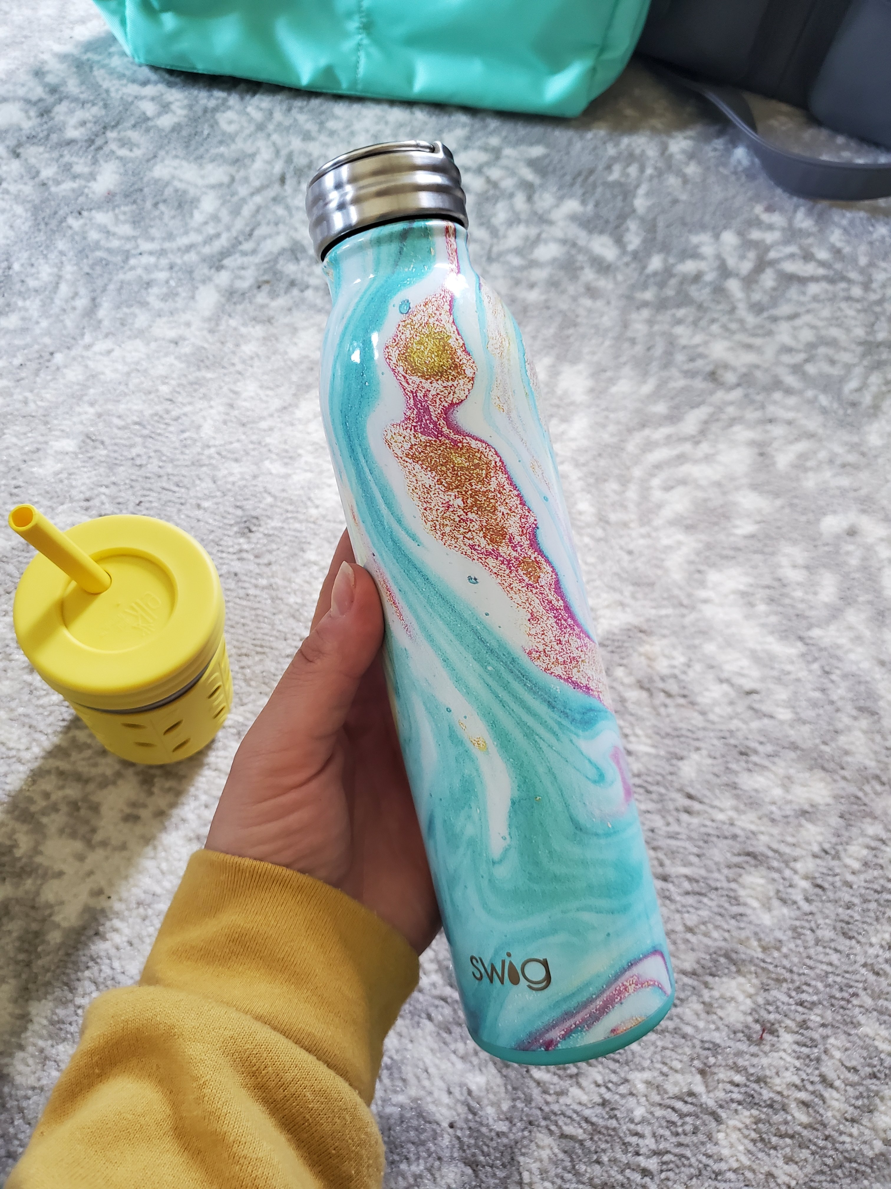 Feeding supplies. Always snacks and water. I bring an extra bottle to refill our cups too (and use code Jessimarie15 on Swig bottles and mugs! 🙌) Having a bib, even if grown out of them at home, is super handy for keeping nice clothes tidy. I stash a fold up plate and silverware too, for when the eating situation is less than toddler friendly.