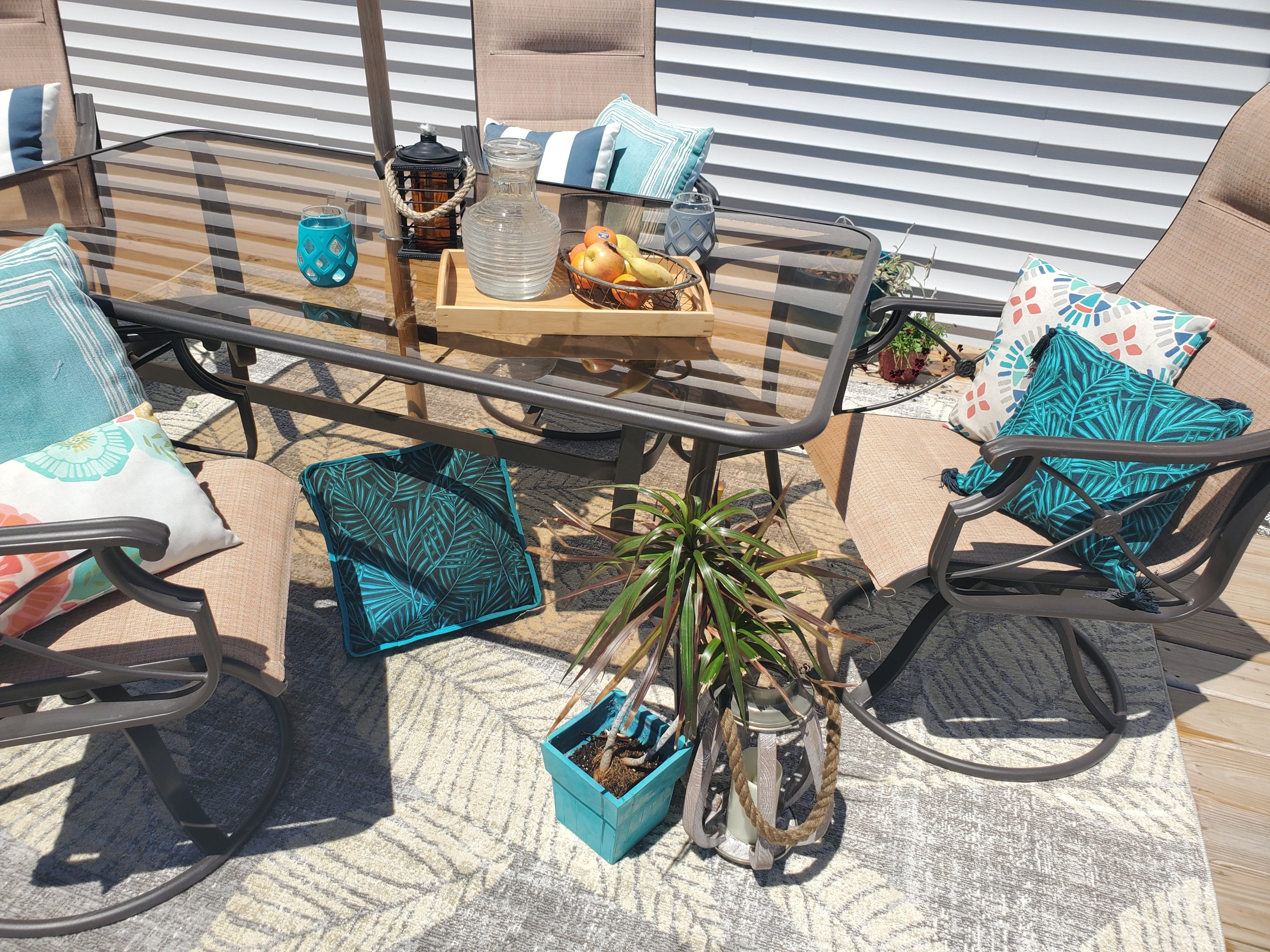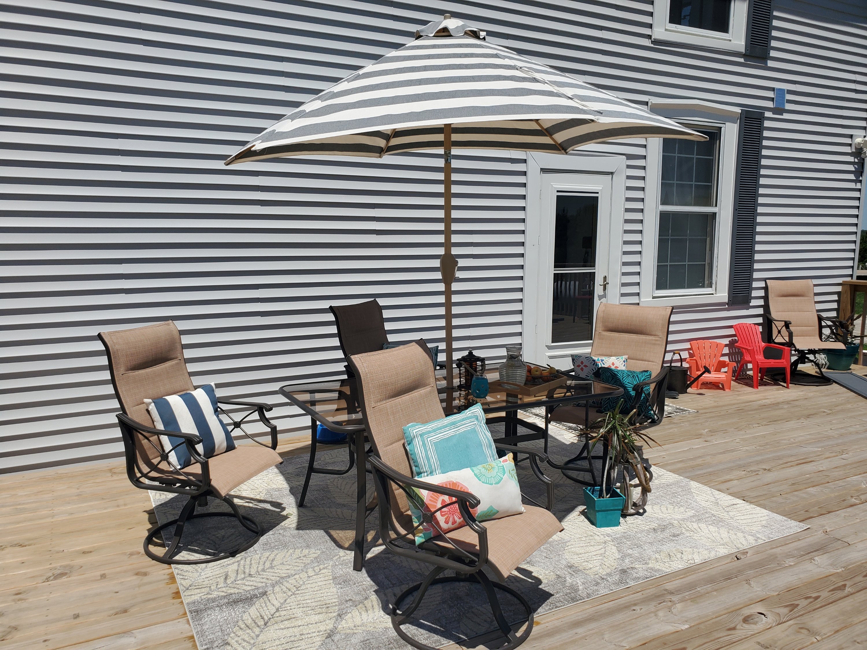 Last year getting the deck built was our project. This year making the deck cozy and entertaining worthy is my mission. So we added a few things. Not done yet, but progress!