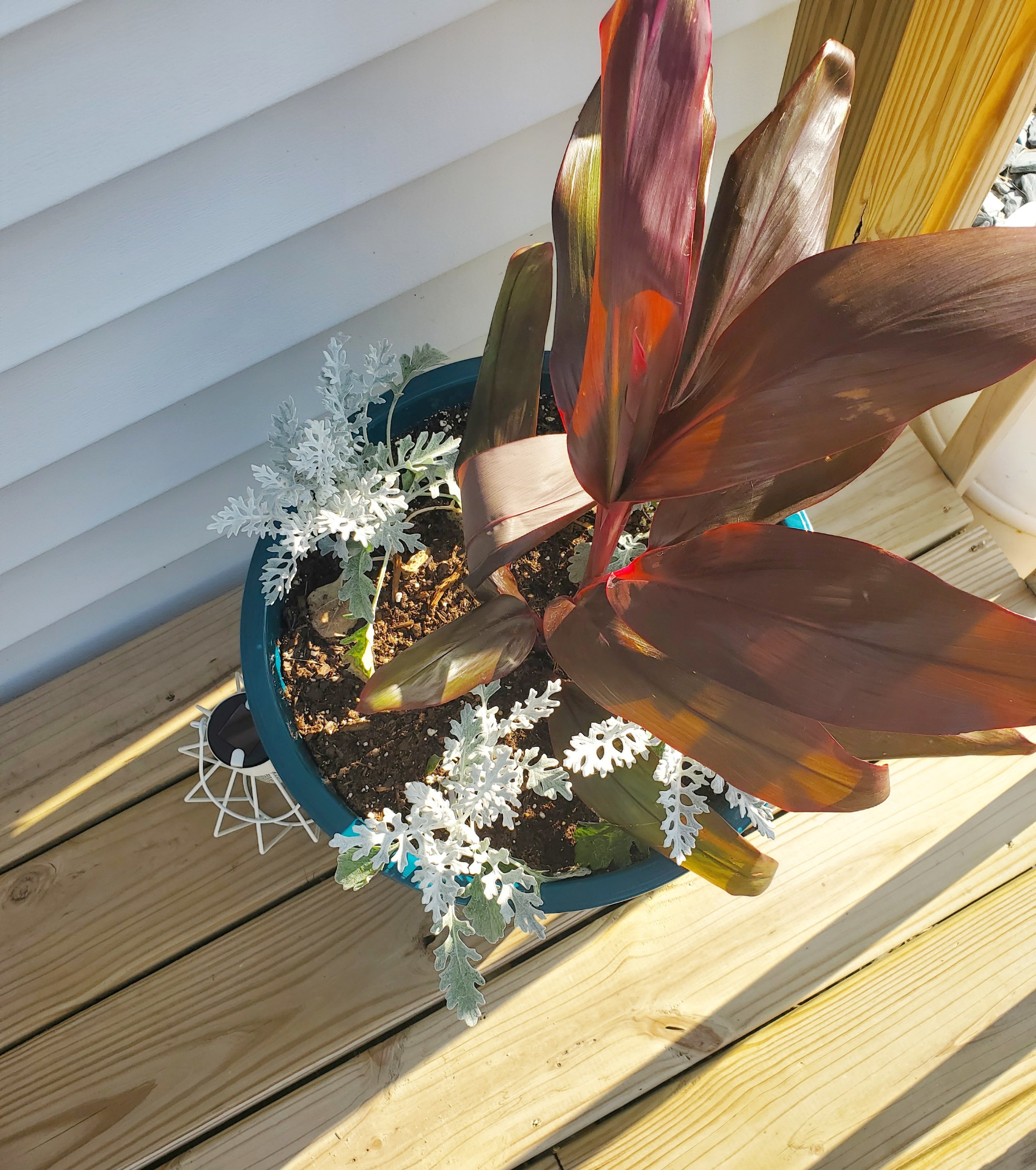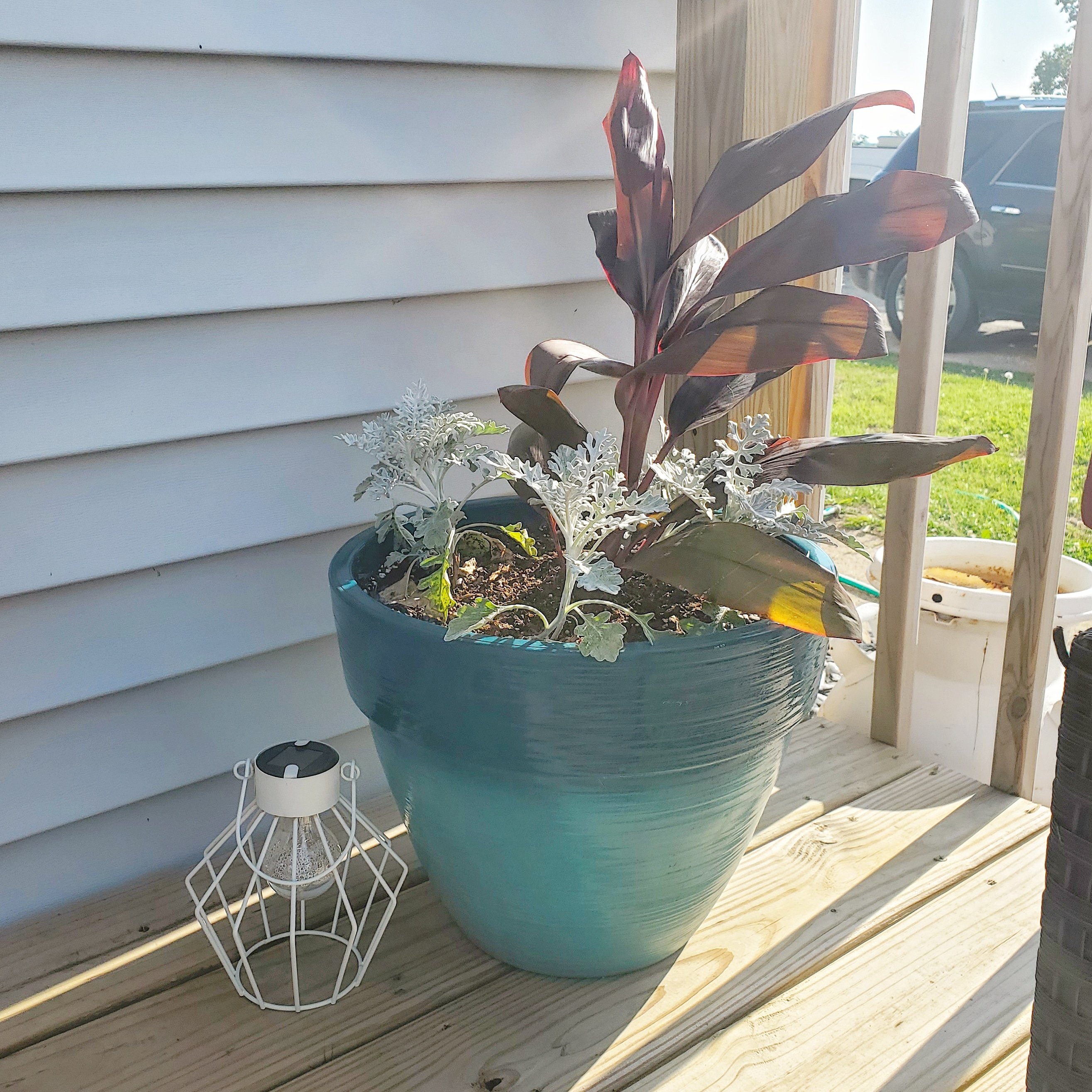 I like my plants colorful! Plus, remember the rule of three, add a centerpiece, and outer plants that will grow and hang and you will be potting like a pro. These were all recently planted, but will soon be big snd overflowing! 🤩