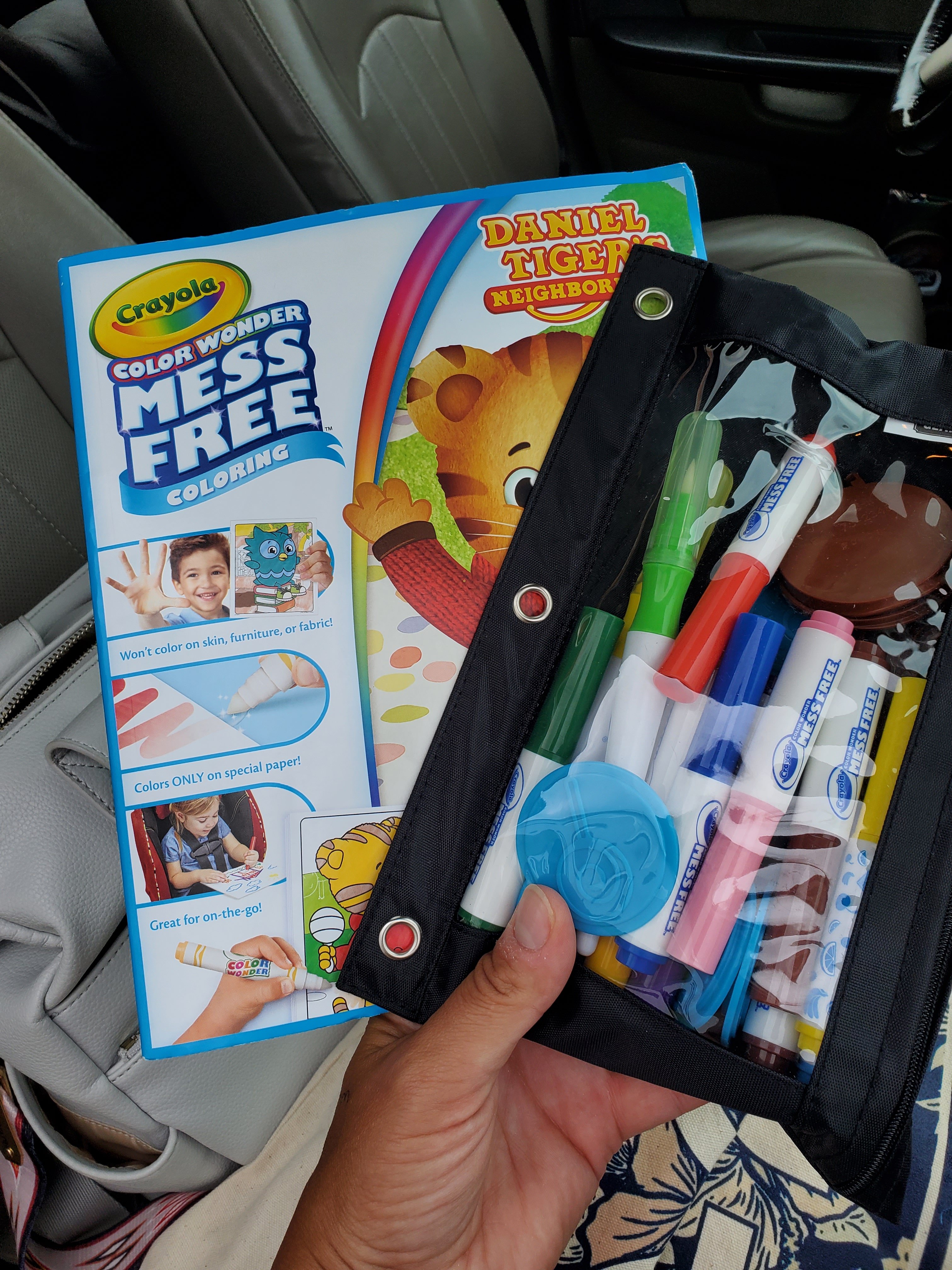 I pack mess free coloring. So simple, but so handy. And I don’t have to worry about clothes and car being destroyed or crayons melting. They make some awesome mess free goodies now, all are clear to begin and make color on the special pages. Viola!
