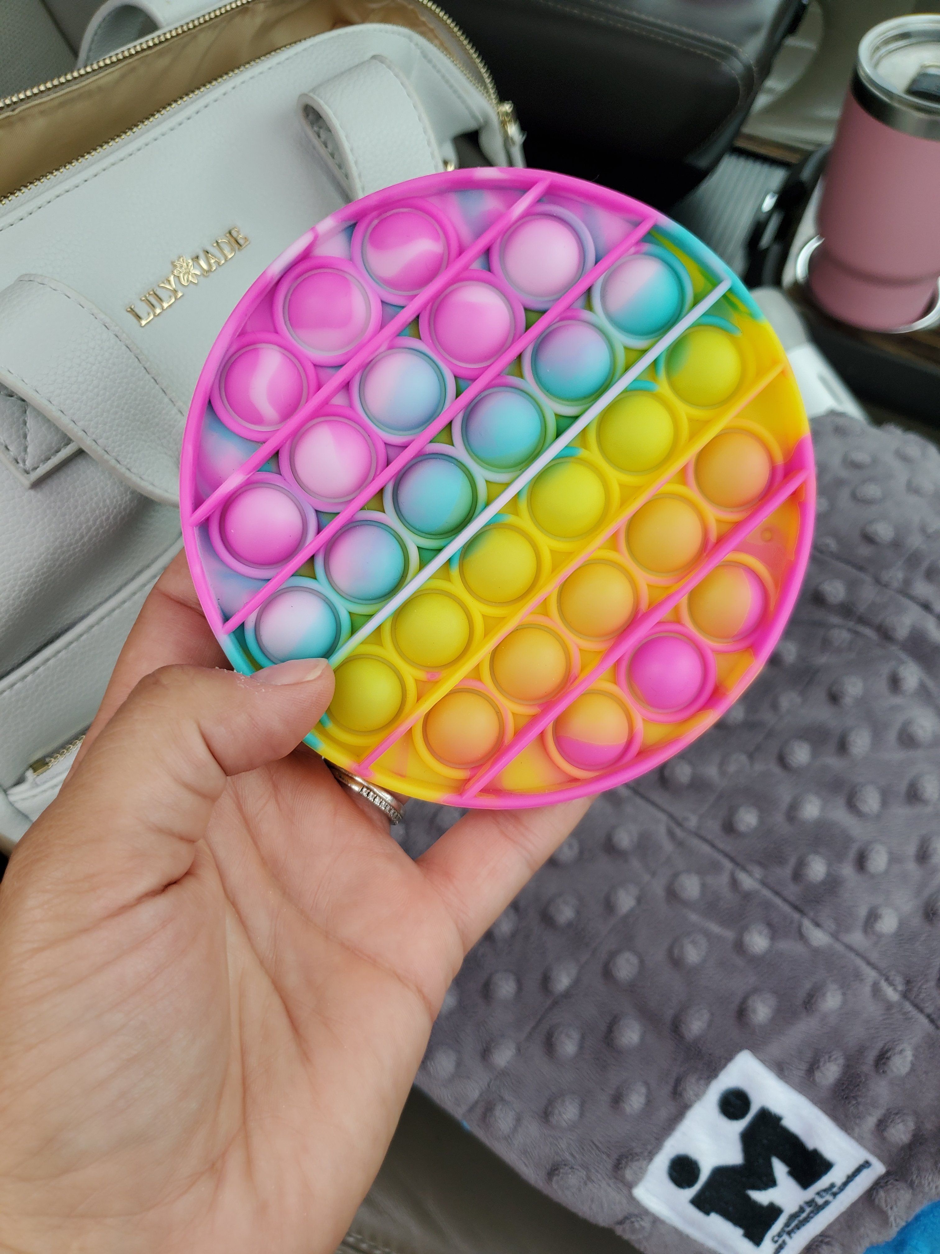 I pack a few new or not-used-in-a-while toys. Dollar Tree is great for finding inexpensive and fun surprises to pack. This popper toy has been a road trip favorite this year (from Target).