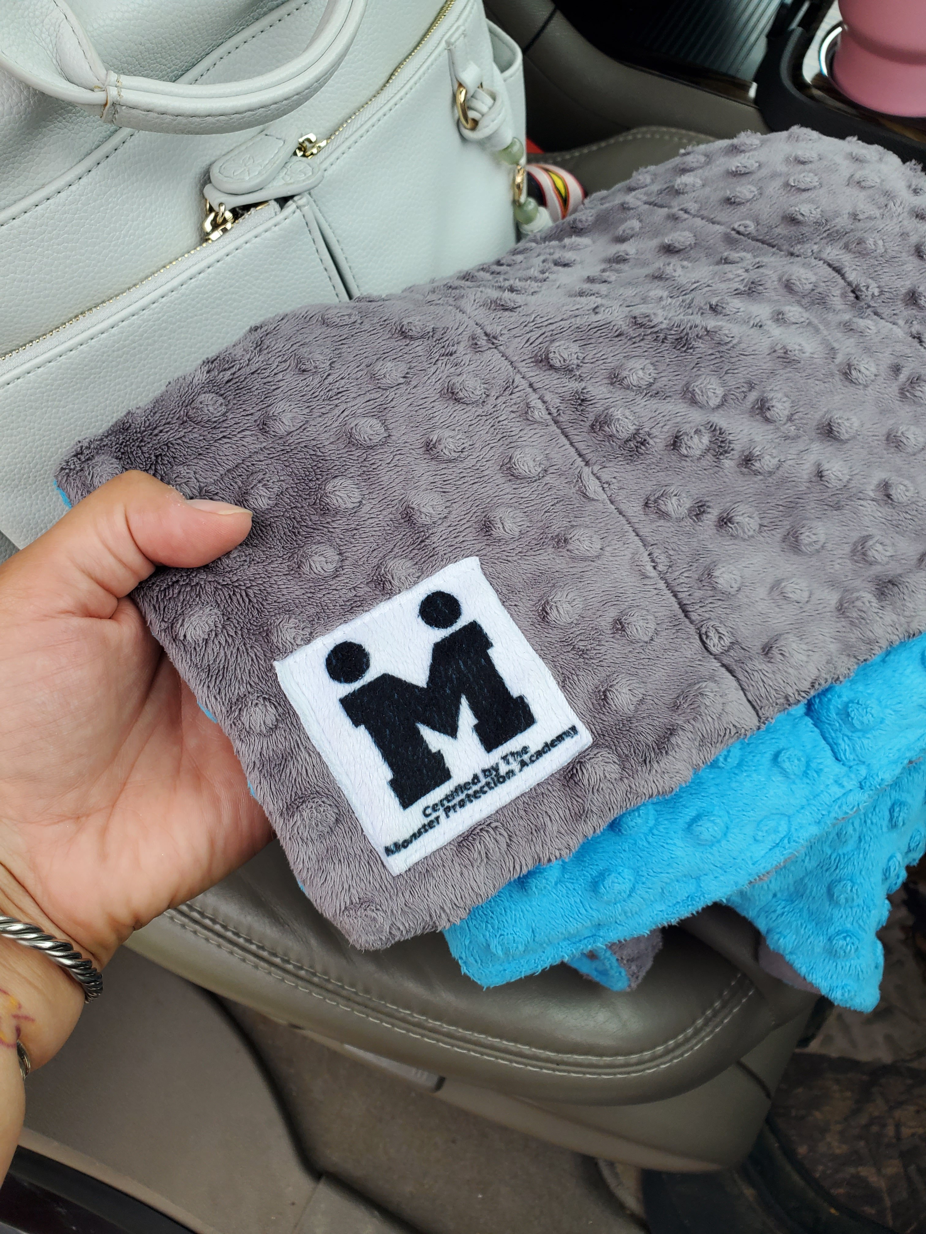I pack our weighted blankets. Our favorites are from Moxie. These make car naps so easy and enjoyable. Aah, some peace and quiet! (You can also use code Jess15 for 15% off here!)