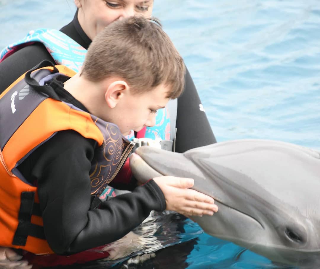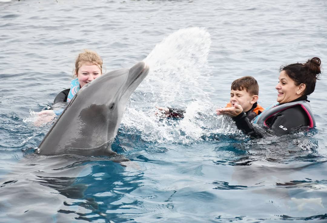 Yes, we danced with the dolphins! 🤩 This dolphin is Dazzle and she was a sweetheart. We learned a lot about her and dolphins in general. You can choose tickets to swim with the dolphins or tickets to meet and greet with them (pet them!), like the youngest and dad did.