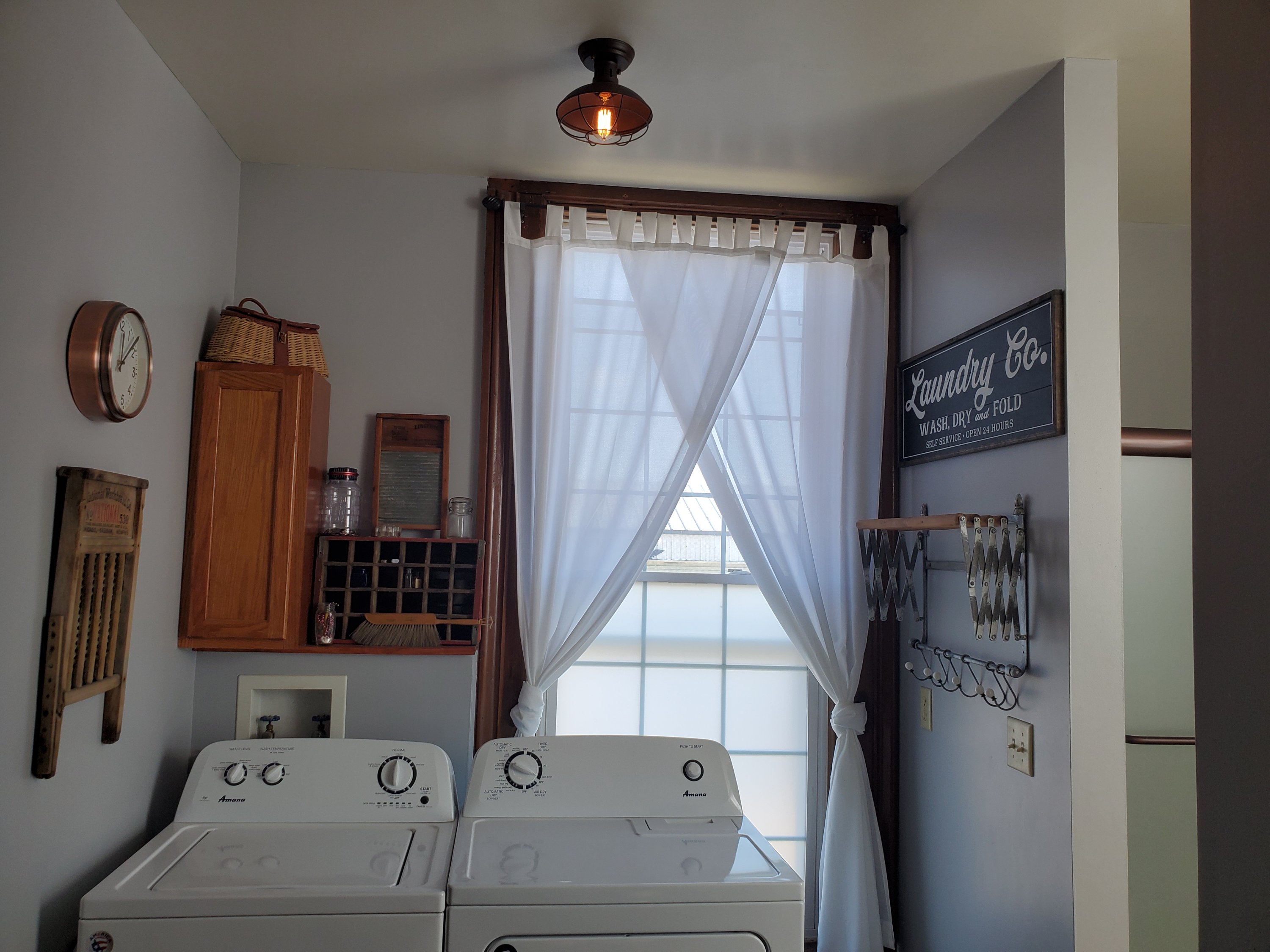 Remember, this is a mini refresh, (see the before shots, yikes, 2 posts back!) not a total overhaul, so this girl will still have to dream of one day having a stacking washer and dryer and wall cabinetry. This is gorgeous to me for now! 😉