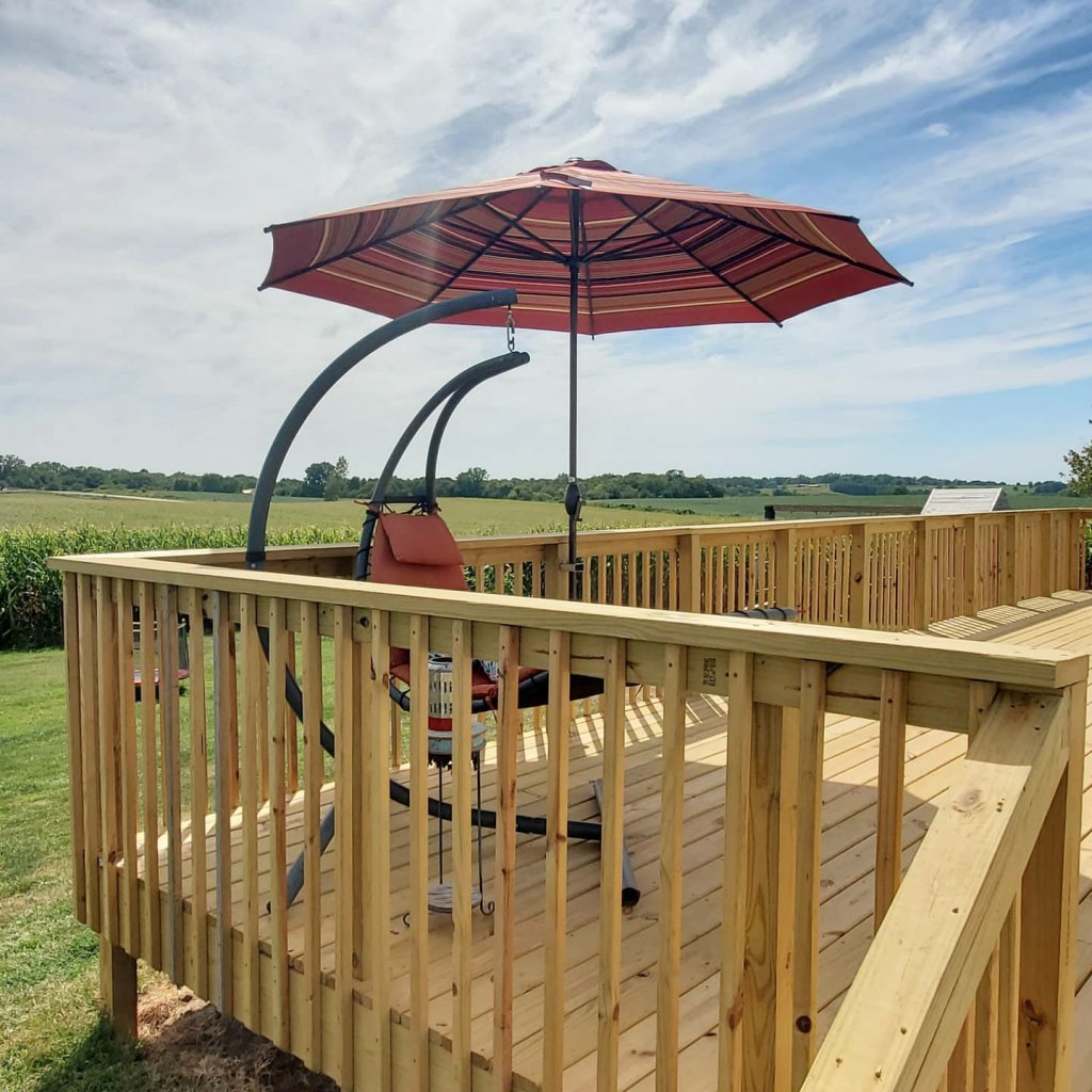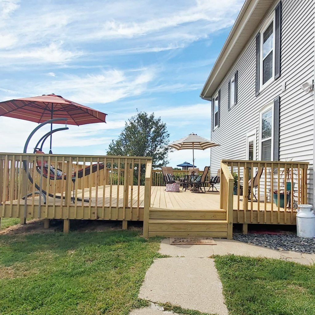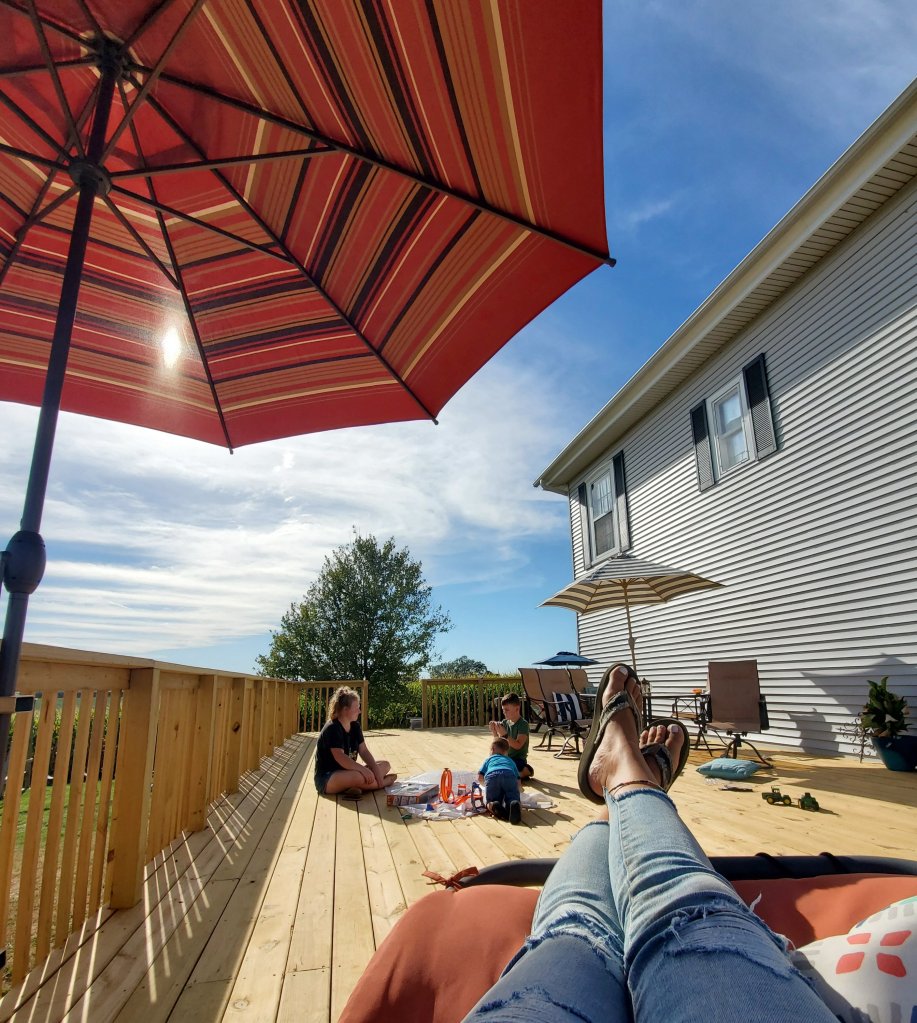 Last year getting the deck built was our project. This year making the deck cozy and entertaining worthy is my mission. So we added a few things. Not done yet, but progress!