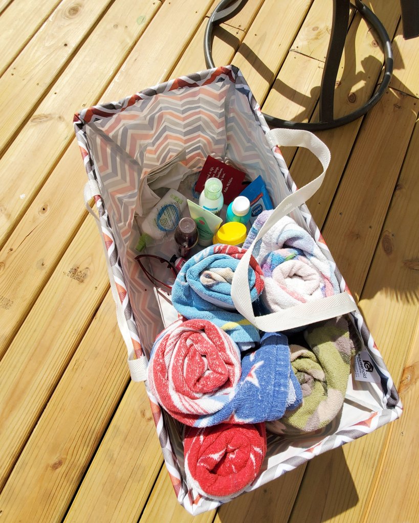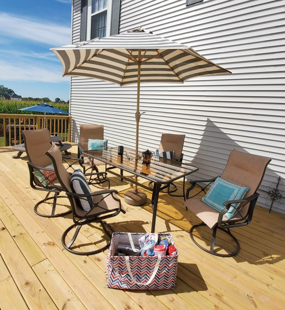 Tip- use a beach bag or tote like the one below to hold your deck or patio essentials. We take it in at night and bring out each day. Super helpful to keep things corralled while not getting ruined being left outside. We keep sunscreen, bug spray, santizer, sunglasses, beach towels, a speaker, and anything we want for the day inside. So handy!!