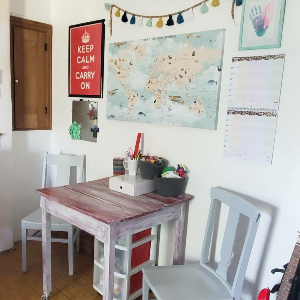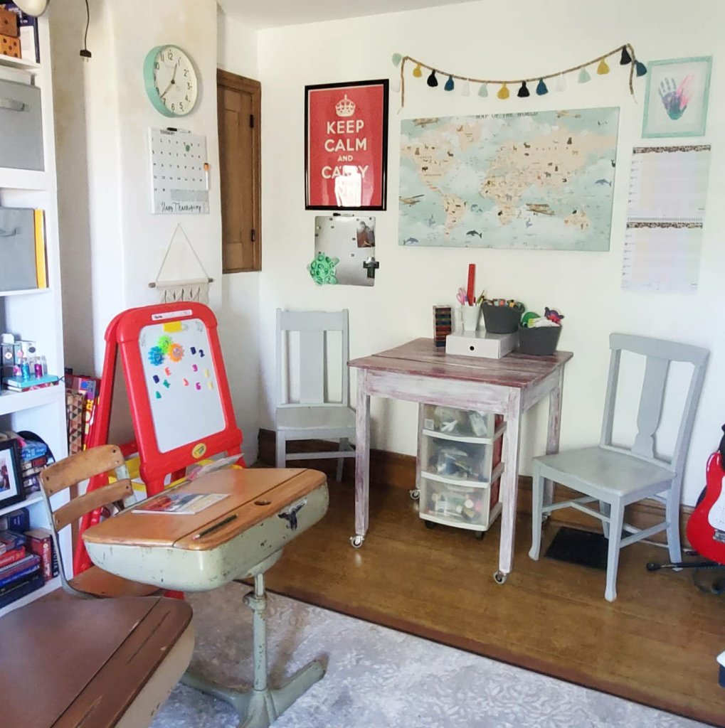 You don’t need a whole room, maybe a corner, or a table, or even a certain table cloth, and when it comes out, its time to learn. I had always worked from home a lot and happen to have space in my office that I was able to convert to a learning space. Don’t worry, even if your space is much smaller, these ideas can help you too!