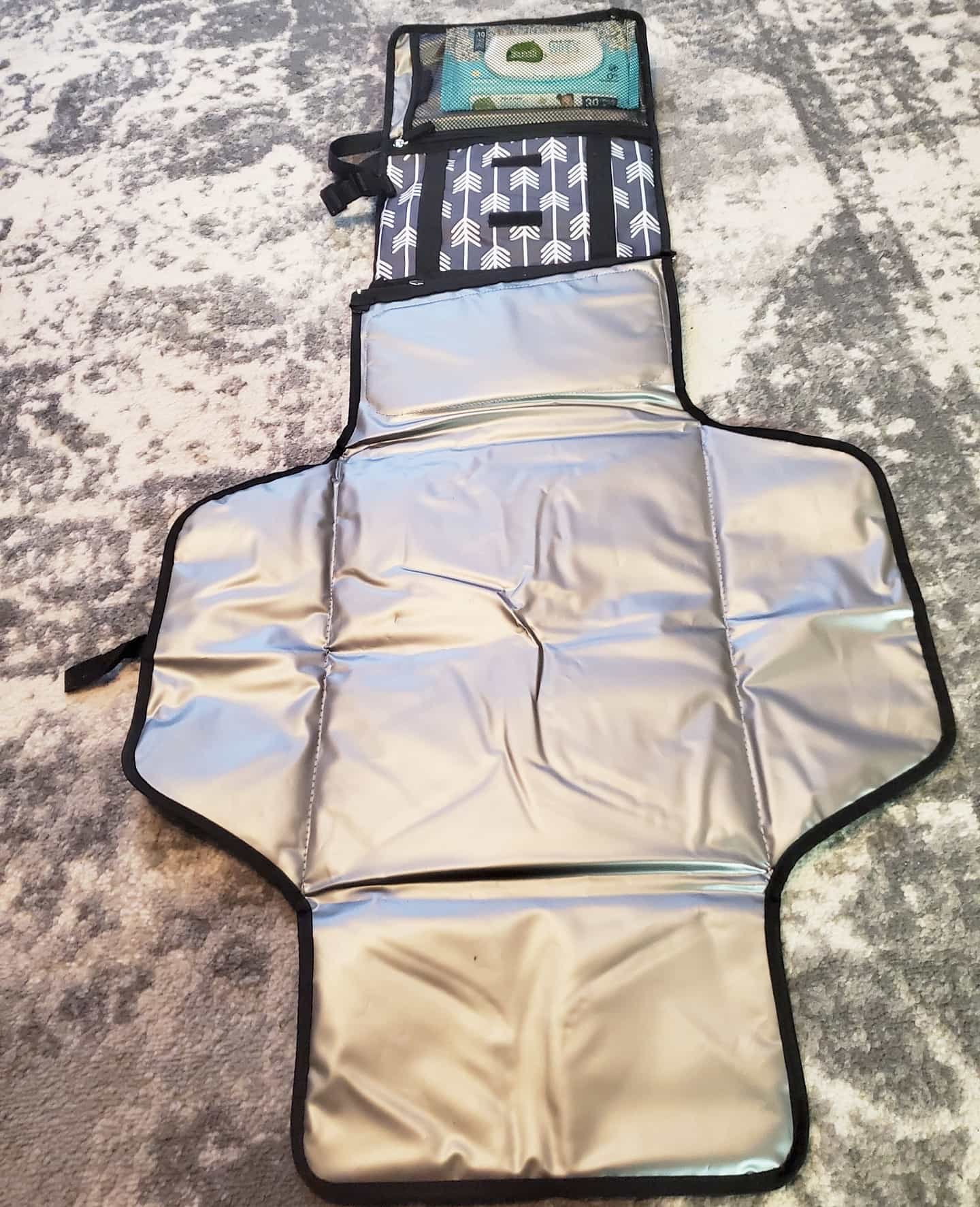 Rubber Changing Pad– This one by Ubbi is so handy. Easy to wipe, roll, fold, it makes diapering on the go so much easier.