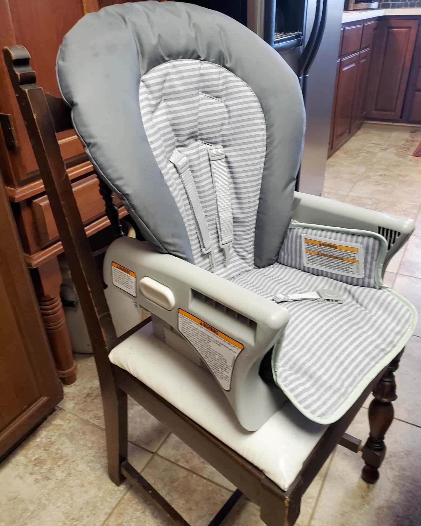 Convertible High Chair– Seriously, if you going to use a high chair, make sure it’s convertible. I had an older Graco version for the oldest and this new model does so much more and therefore is so much more handy. It can be attached to a chair as a booster, the back can be removed for more space, the base itself can be a stool seat for older kids. It really has all the features we need, including folding up and the tray hangs on the back!