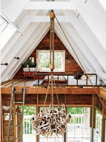 I love the idea of mixing some glamour with rustic elements. Maybe this isn’t a new idea, but definitely my style! I recently came accross this gorgeous room. Particularly, I loved the light fixture and think this could be an easy, yet stunning project.
