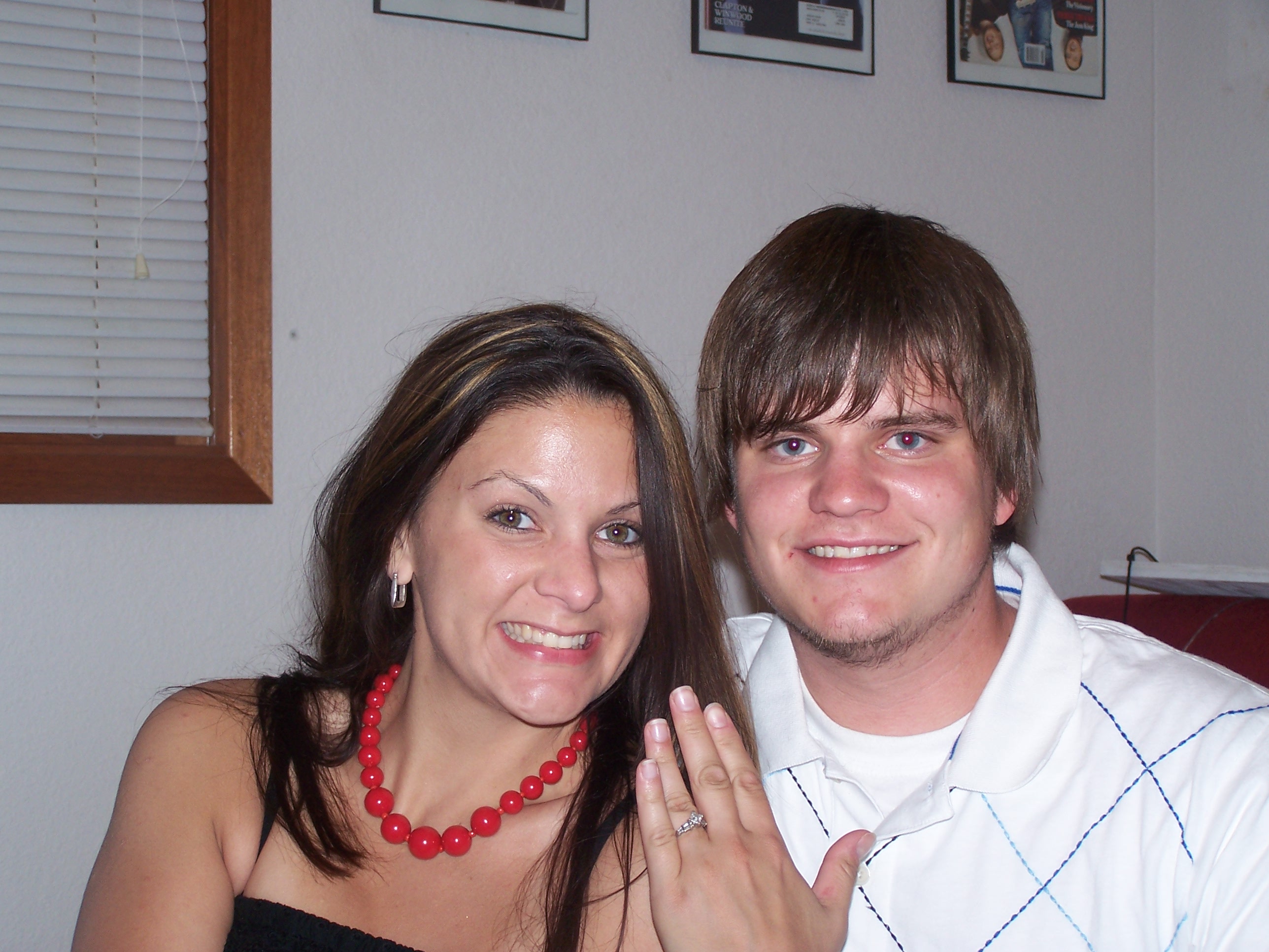 It has been a few months now since we got engaged and we still haven’t taken engagement pictures. We didn’t set an exact date and we didn’t throw the party since it was winter, so we decided to put it off for a while. But, now that we are finally having the party we thought it was about time to make the official announcement. We plan to have a few shots done professionally, but that will still wait a bit longer. We set up our tripod and camera timer the other night and had fun snapping a bunch of shots. We thought we would show off the one we picked to go in the local paper: