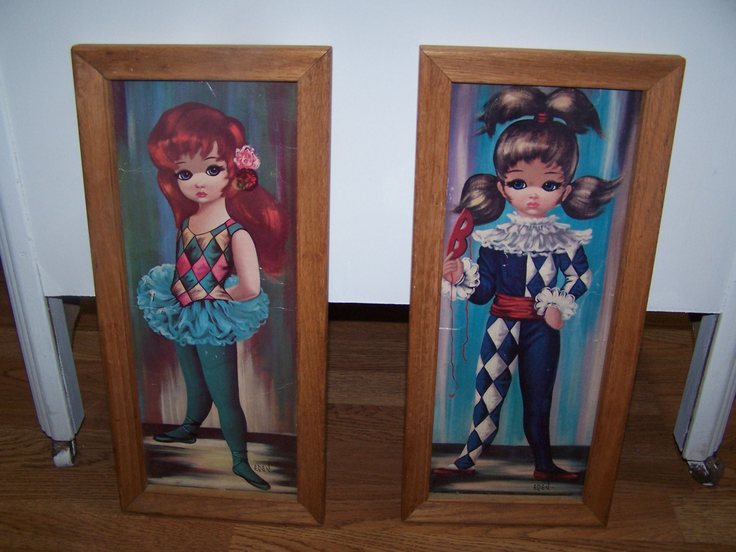 I went back to the thrift store and those paintings were still there. AND, they were 1/2 off! So, I snagged them and cleaned them up a bit. Now for sale in the shop! Check them out!