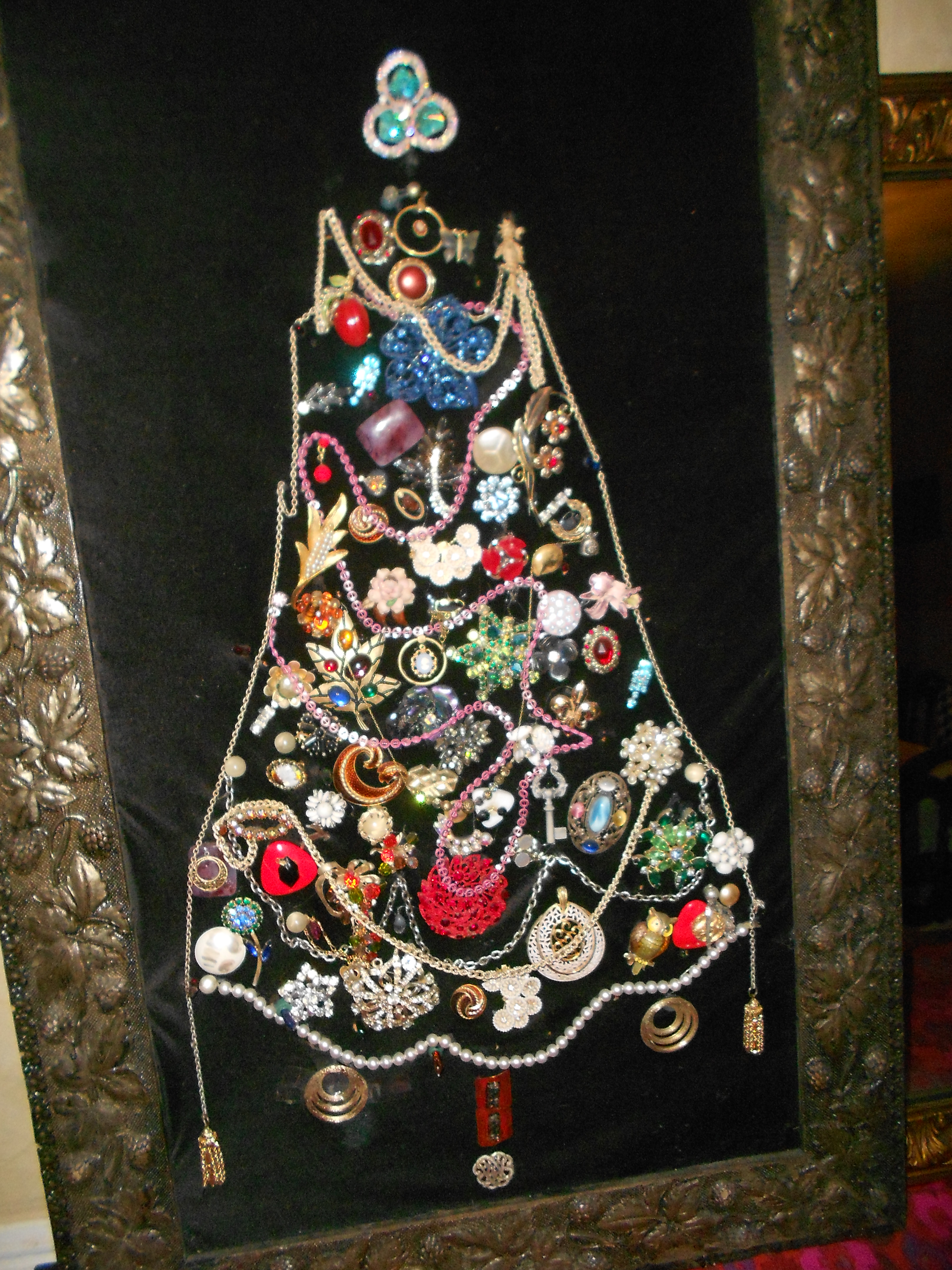 In the dining room we displayed my grandparents’ jewelry tree. Grandpa made this out of Grandma’s old jewelry.