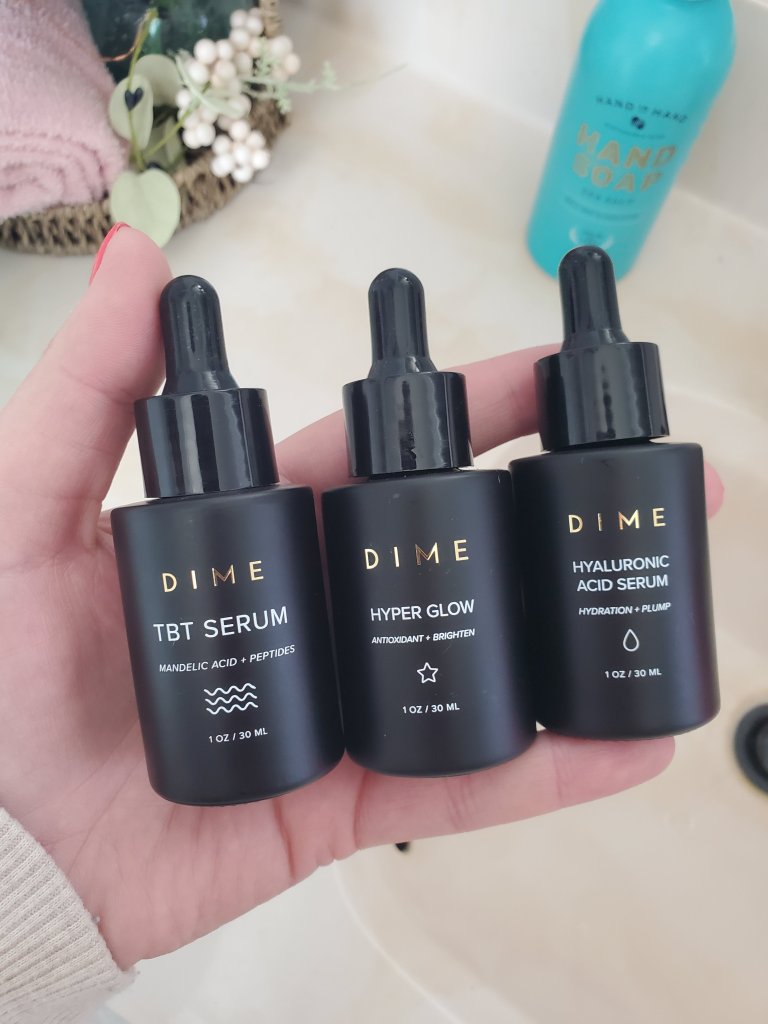 My favorite skincare brand is Dime Beauty! I use every single product from them and have better skin now than I did in my 20’s! They use clean, safe ingredients and are cruelty free, plus affordable and EFFECTIVE!