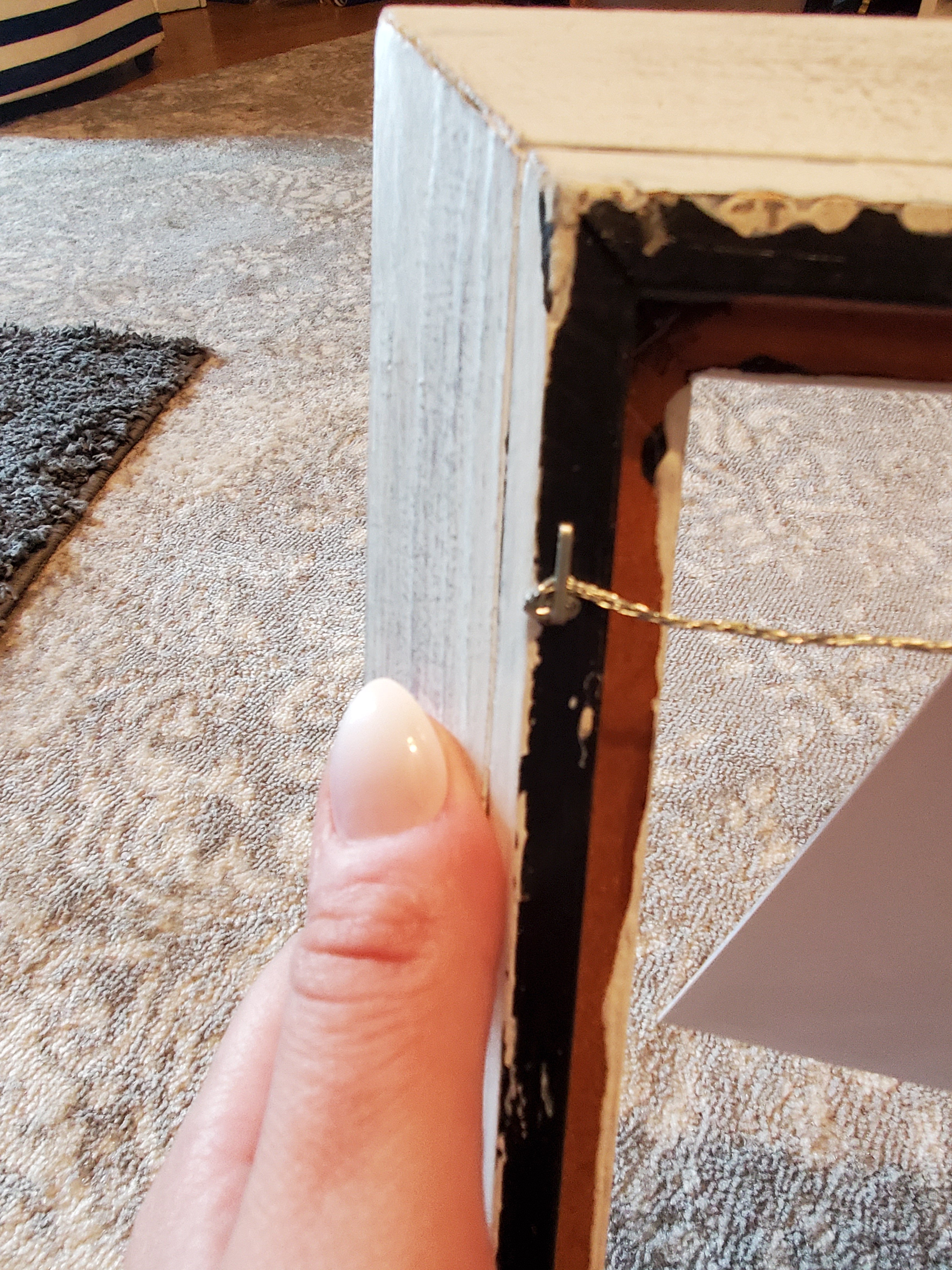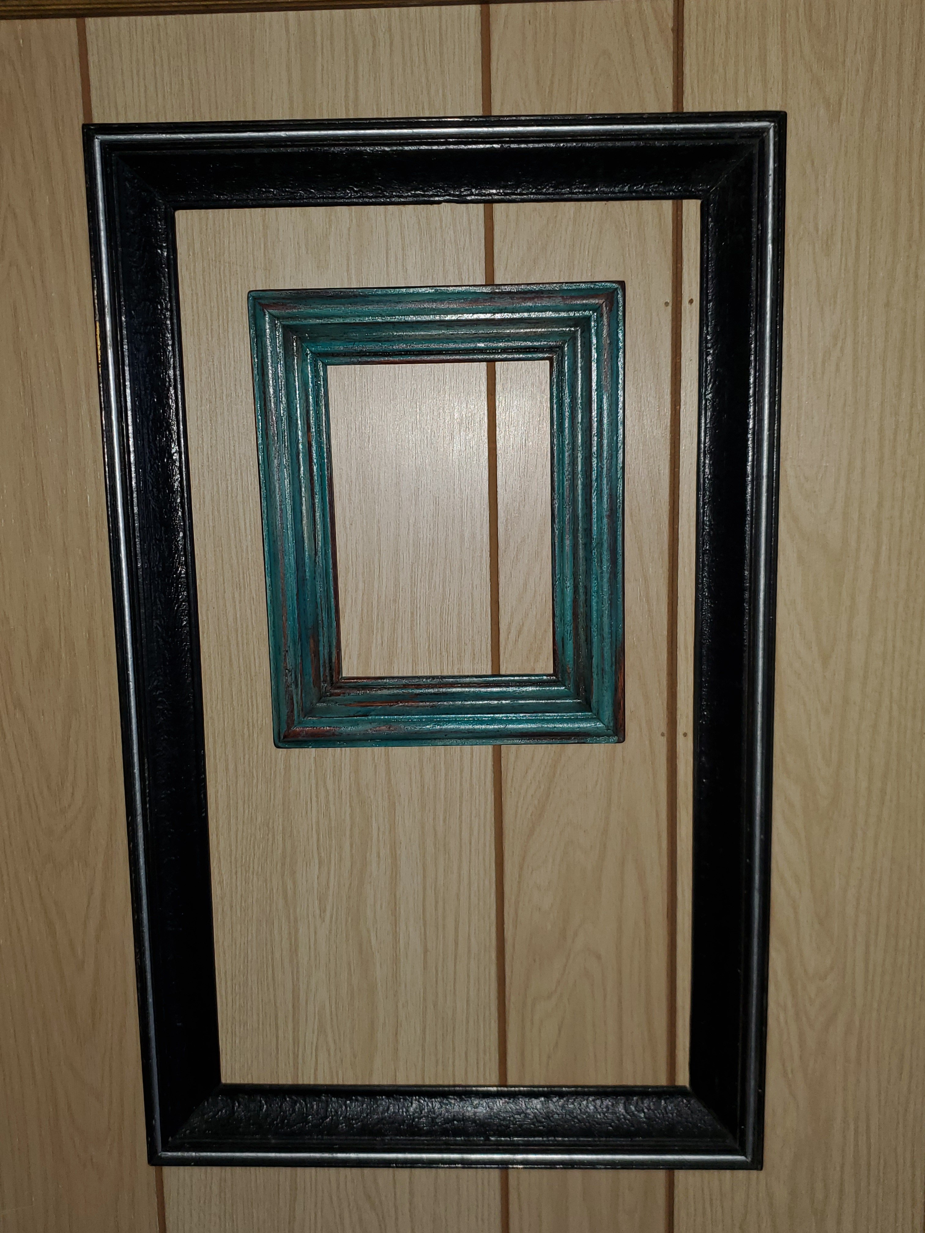 This frame I once painted black with a silver line. Years ago. I was over it. (Ignore the ugly paneling in the upstairs hall we hope to rip out soon)