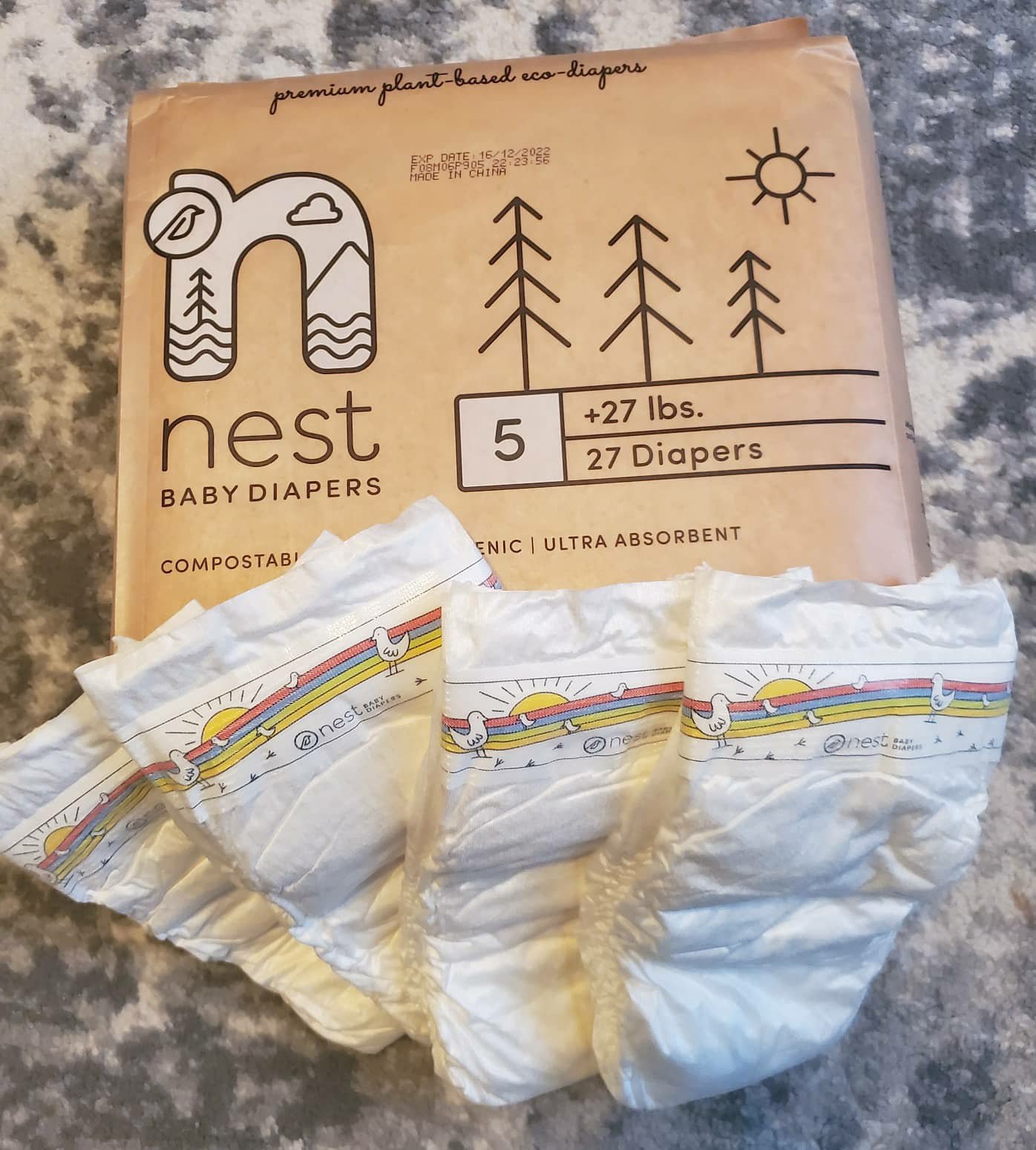 Third, I want to use a brand that is more eco friendly. Nest’s diapers are made of all plant based materials- wood, bamboo cane, and are completely compostable.
