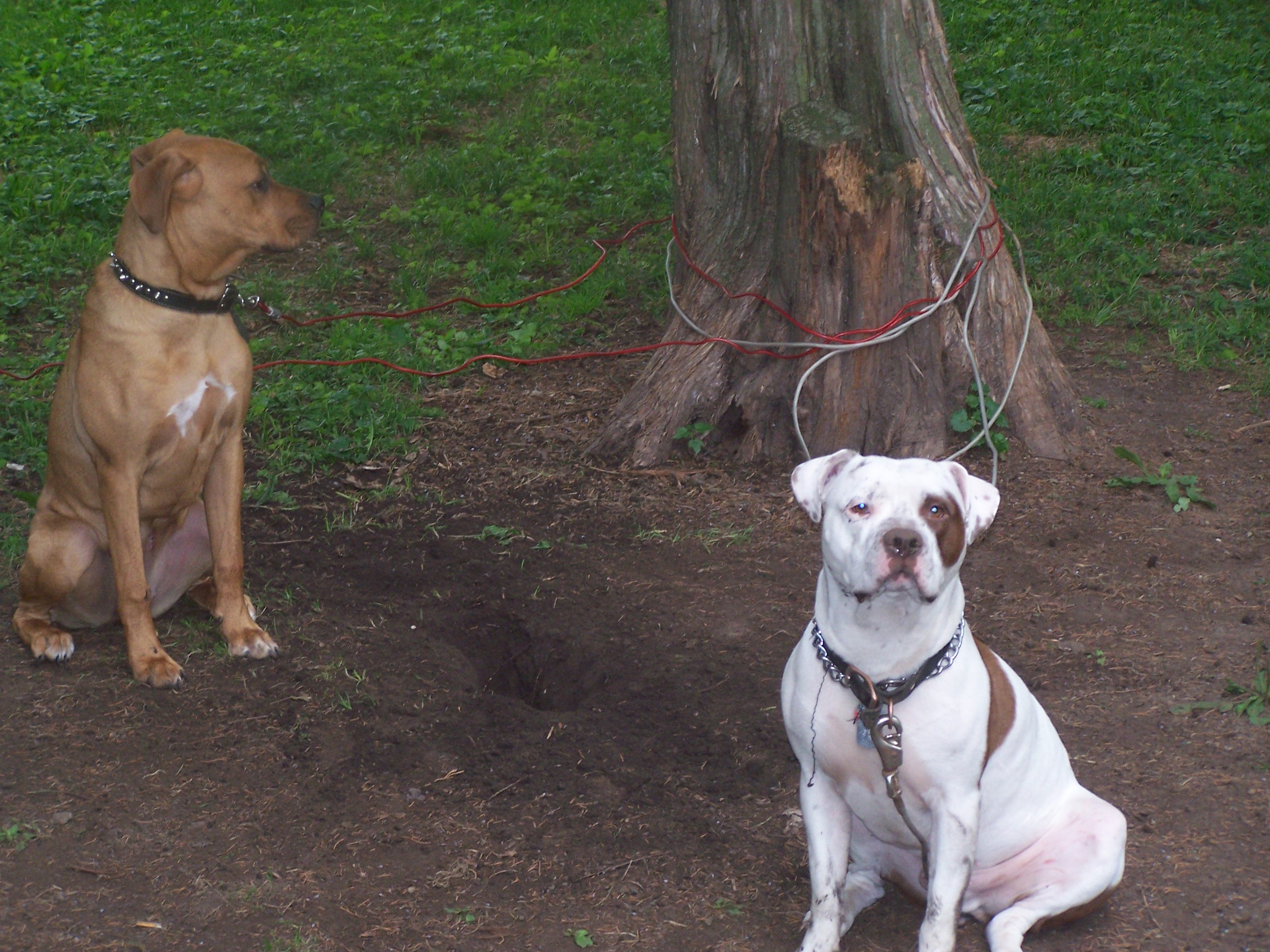 The dogs made a nice mess for me to clean up this morning. They decided that the five minutes they were left alone in the yard was just long enough to dig for moles. Here they are trying to look all innocent and quite muddy! Also check out Marley’s new collar. She thinks she’s tough!