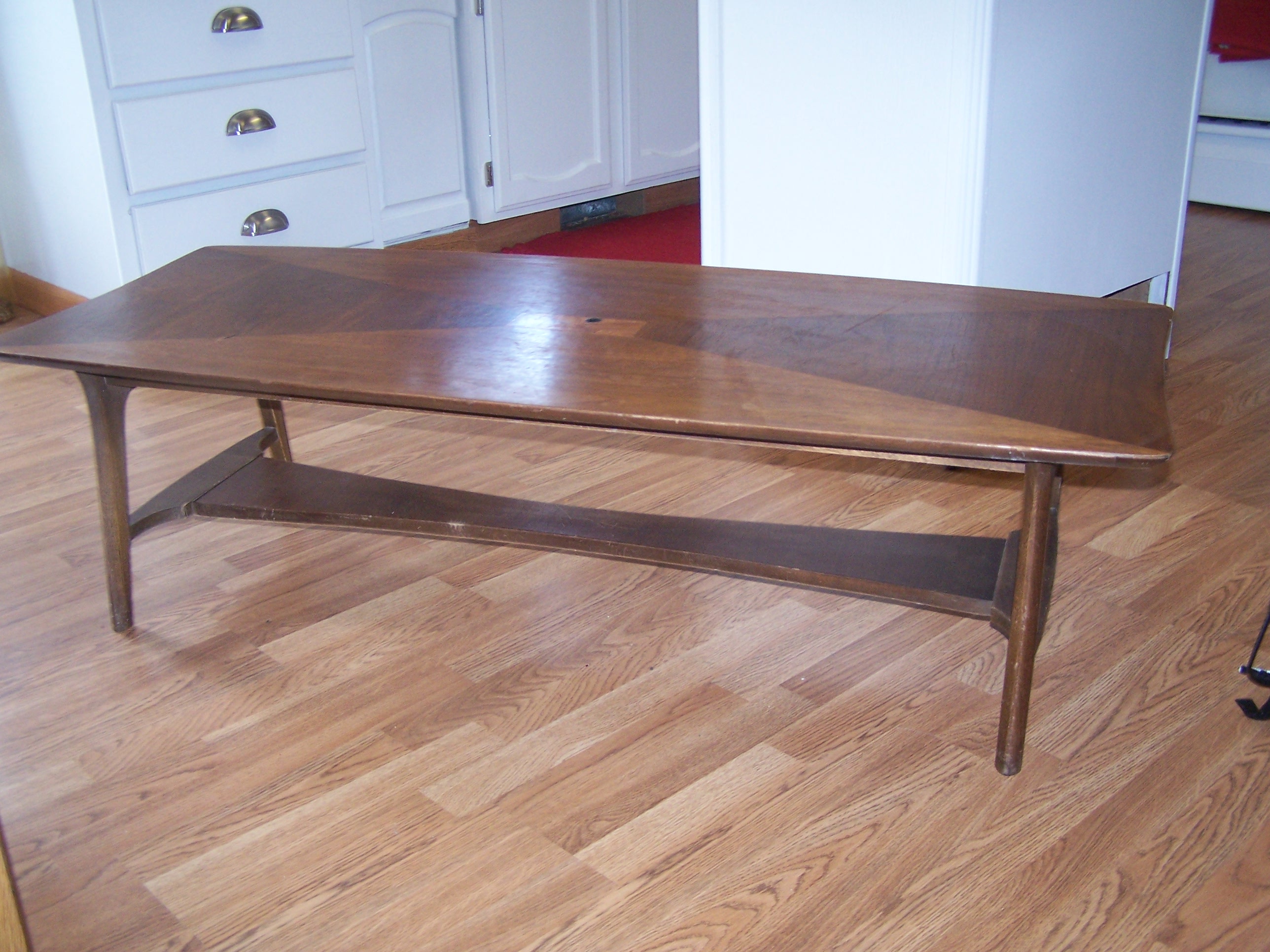 I have a gorgeous Mid Century Modern Coffee Table to add to the shop! The table is low and long, and gorgeous wood. The triangle pattern in the center is neat and the legs are that great MCM shape. The table is in great vintage condition but for one small mark in the top. It is refinish-able and would be perfect! Let me know if you are interested! 🙂