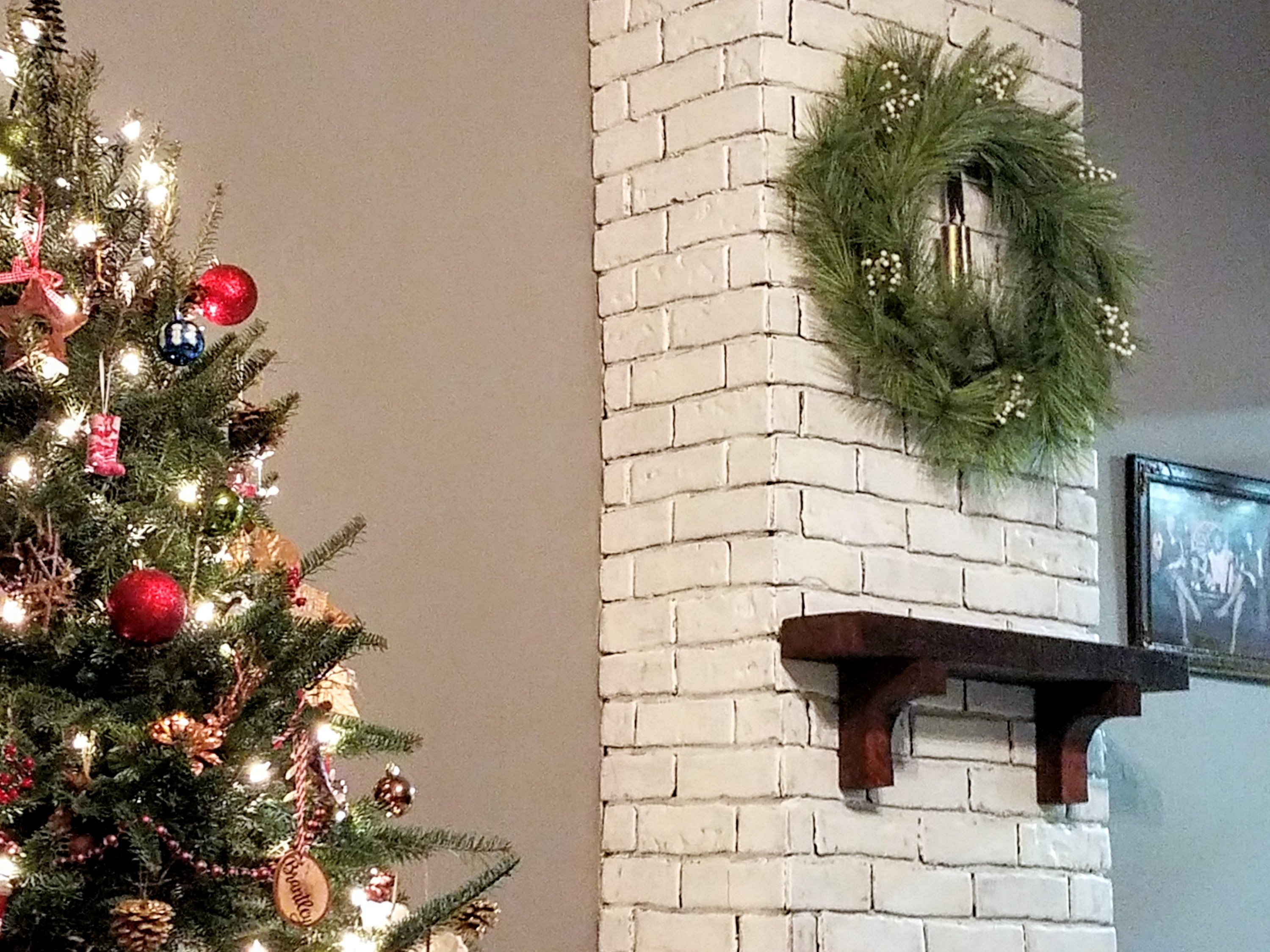 Don’t mind the empty wall next to it, at least the Christmas tree fills the space for now. I have plans for huge floating shelves all up and down there as “built-ins” for the room. Any guess how long that will take us? 😂
