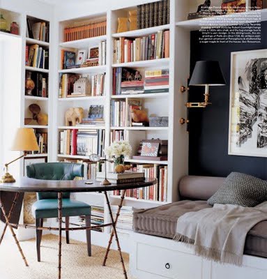 I love the bookcases in this photo. It utilizes the space well, which is what I really need to do!