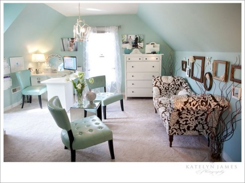 Another blue office. Reminds me of mine with the couch. Something so sweet about this one!