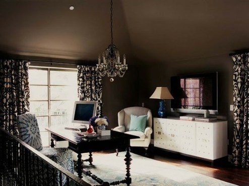 This office has been my dream office for years now and was the inspiration for the office in my last house being light blue. This one might end up light blue as well, with the addition of the red items. Again with the black frames!