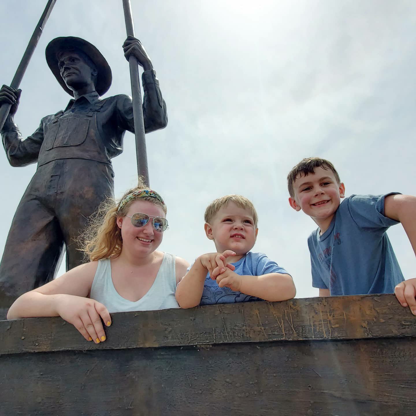 4. Muscatine River Front- plenty to do down here, even distantly! You may not be visiting the pearl button factory museum right now, and even the splash pad is not turned on yet, but it’s still a beautiful, relaxing, and even entertaining area of Muscatine. You can walk the gorgeous river front, even stopping to read the plaques about the city history. You can play at the play ground. You can even take photos with the clam digger statue. And there are a few downtown restaurants up the block that offer outside dining!