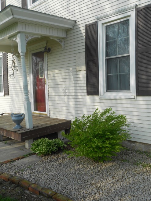 It’s at least a start. So, while I was out there I started pulling a few “weeds” from the rocks around the porch. By the way, I am puzzled as to why the last owner planted three big, beautiful, green plants on one side of the steps, but none on the other. So, if you are wondering, don’t ask me! So, as I was pulling this “weed” from between all of the rocks (it looked like misplaced grass) I noticed it was growing from bulbs! Grass doesn’t grow from bulbs, does it? We are curious as to what it is, and maybe whether or not we should be pulling it!? Here is a picture of what I pulled up, so if you have any info I’m all ears!